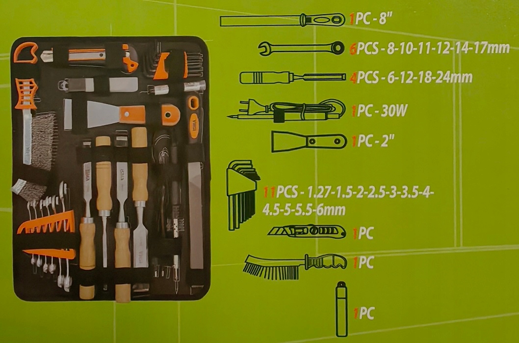 Инструменты подобраны таким образом, чтобы содержимое чемодана было максимально практичным. Набор позволяет: