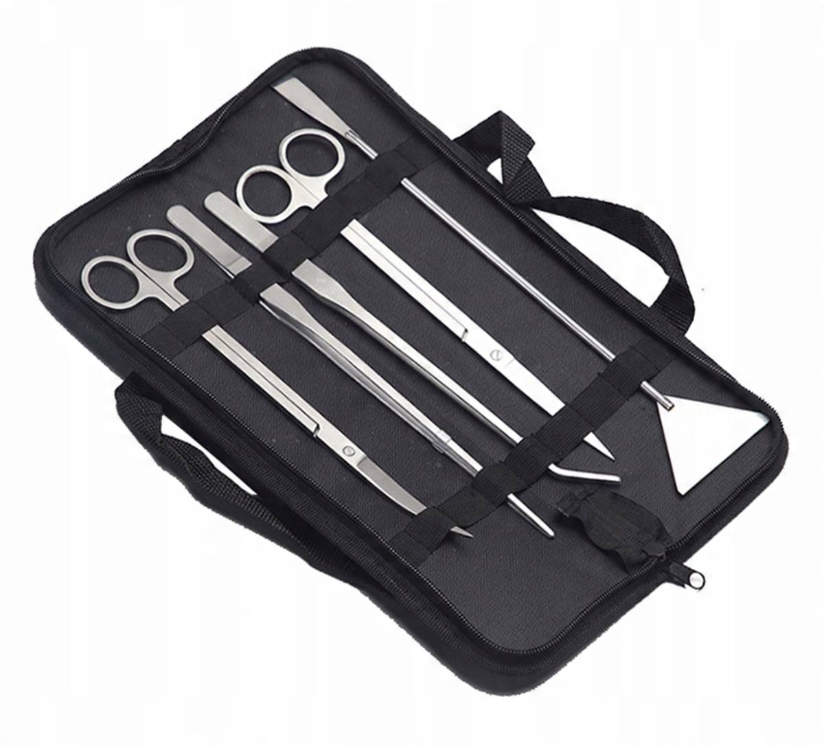 - Укомплектован 5 элементами (два пинцет, две ножницы и лопаточка).