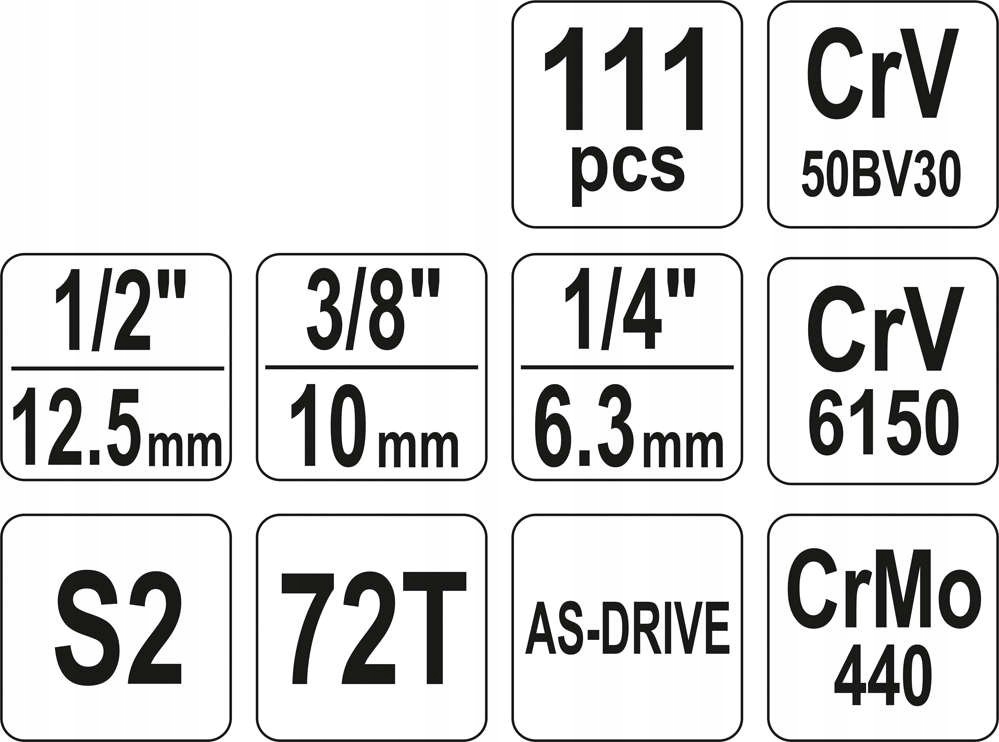 YATO ТОРЦЕВЫЕ КЛЮЧИ НАБОР КЛЮЧЕЙ ИНСТРУМЕНТОВ 111 шт. 1/4 дюйма 3/8 дюйма 1/2 дюйма YT-38831