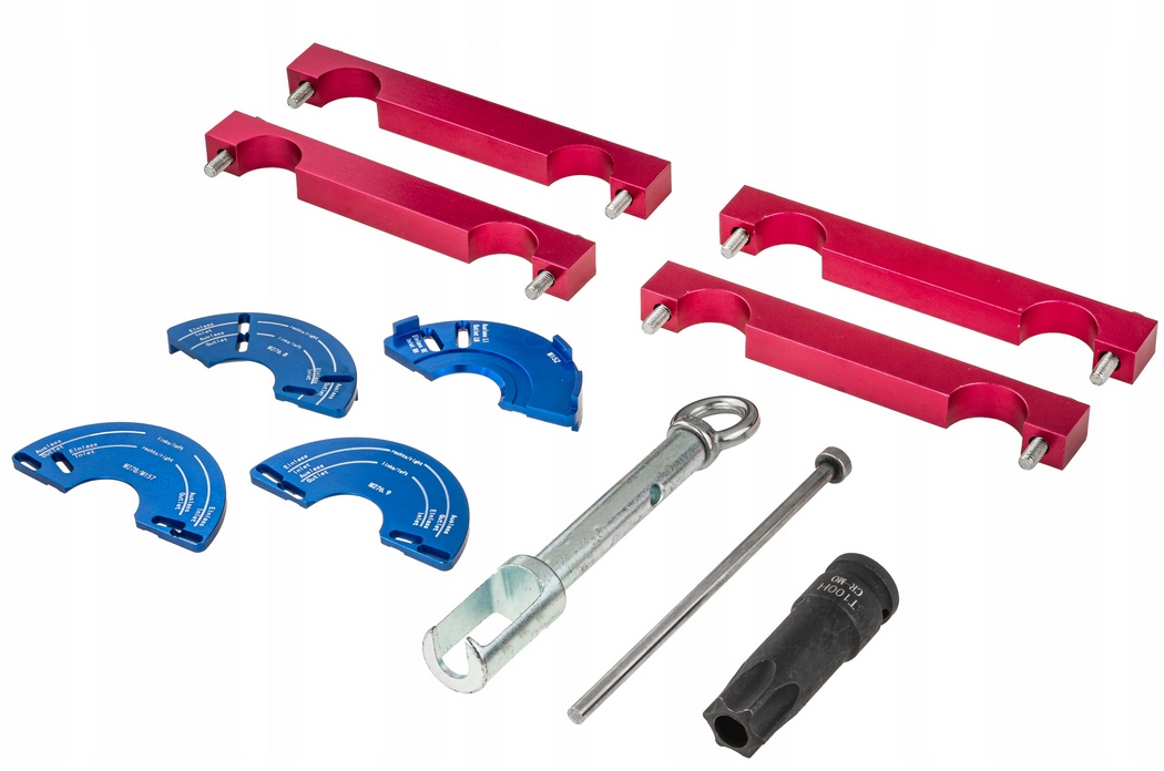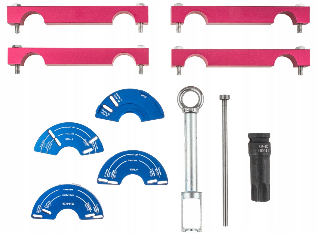 Профессиональный набор инструментов, предназначенный для регулировки и фиксации распределительных валов двигателей Mercedes-Benz. Он позволяет точно регулировать угол газораспределения, что гарантирует правильную работу двигателя. Комплект изготовлен из высококачественных материалов - прочный, прочный и надежный в условиях мастерской.