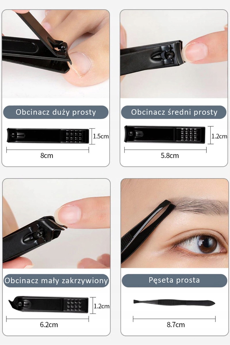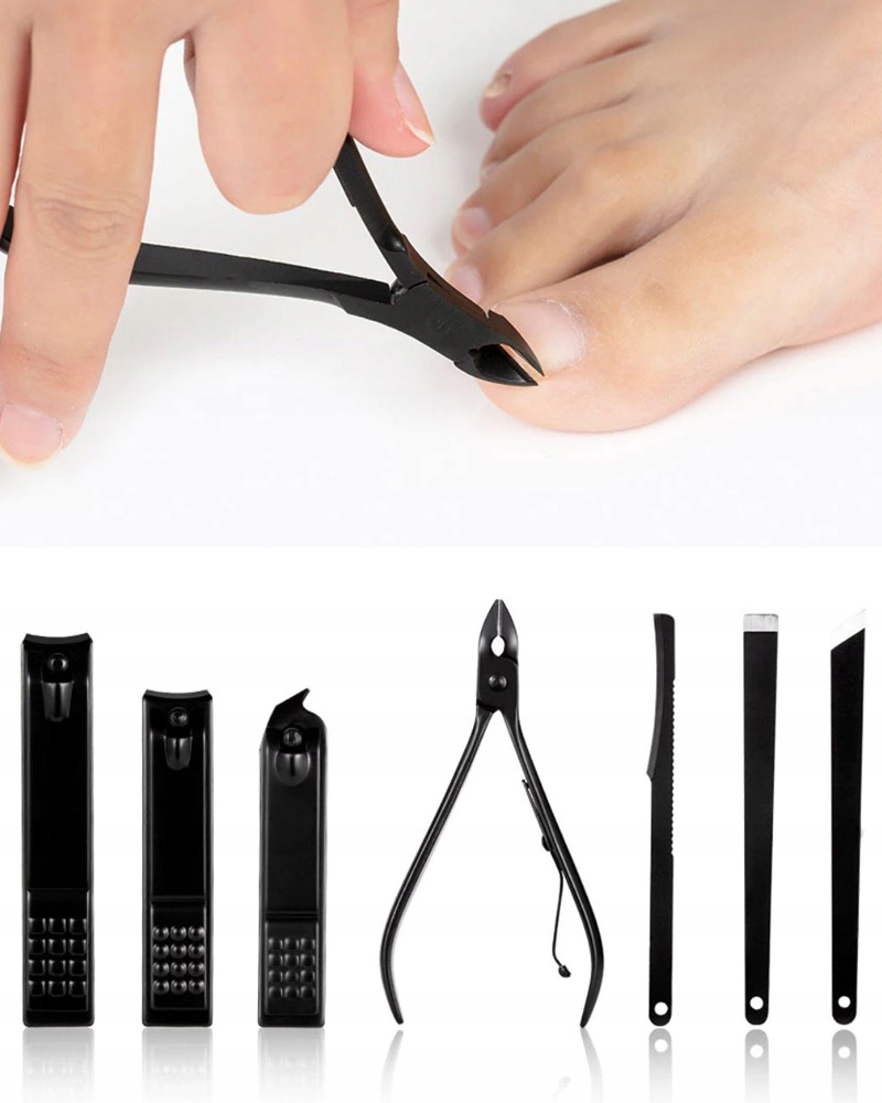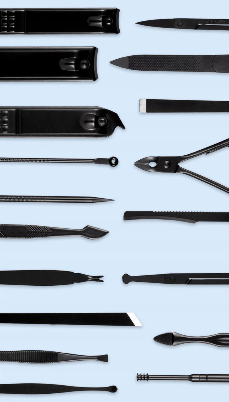 Набір інструментів для манікюру і педикюру в чорному матовому футлярі