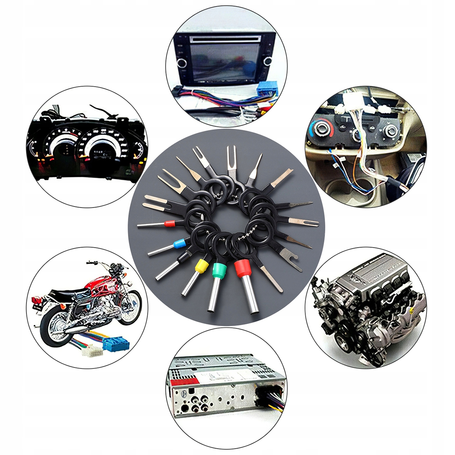 ✅Набор инструментов для снятия клемм — это обычный инструмент для большинства разъемов, подходящий для большинства автомобилей, таких как мотоциклы, и других электронных устройств, таких как домашняя сельскохозяйственная техника.
