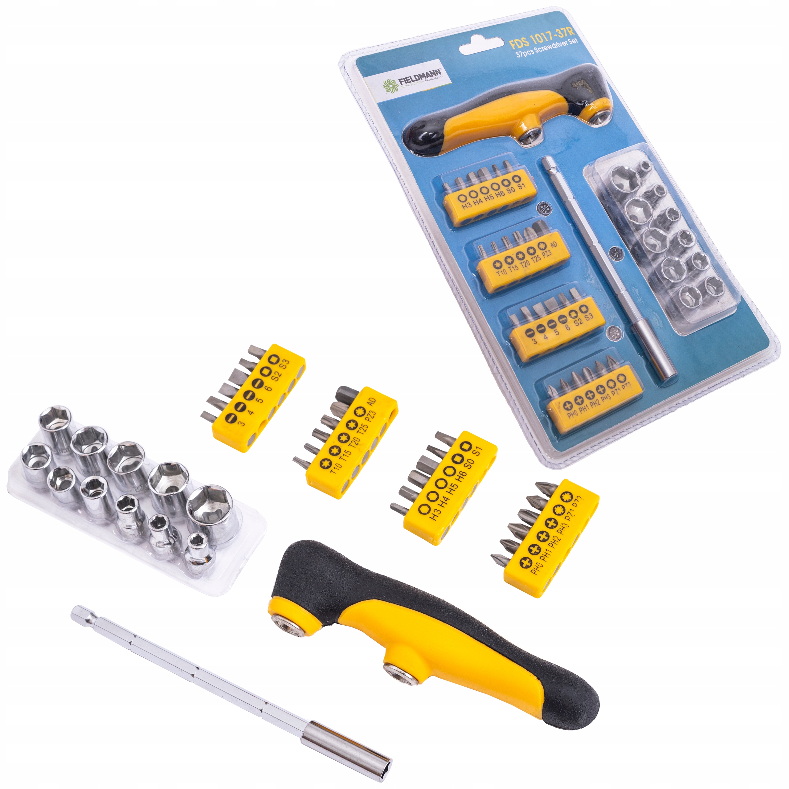 Т-образная отвертка с битами и головками Fieldmann FDS 1017-37R — это набор, который стоит иметь под рукой в мастерской и дома. Позволяет выполнять большинство отделочных и ремонтных работ, что очень полезно.