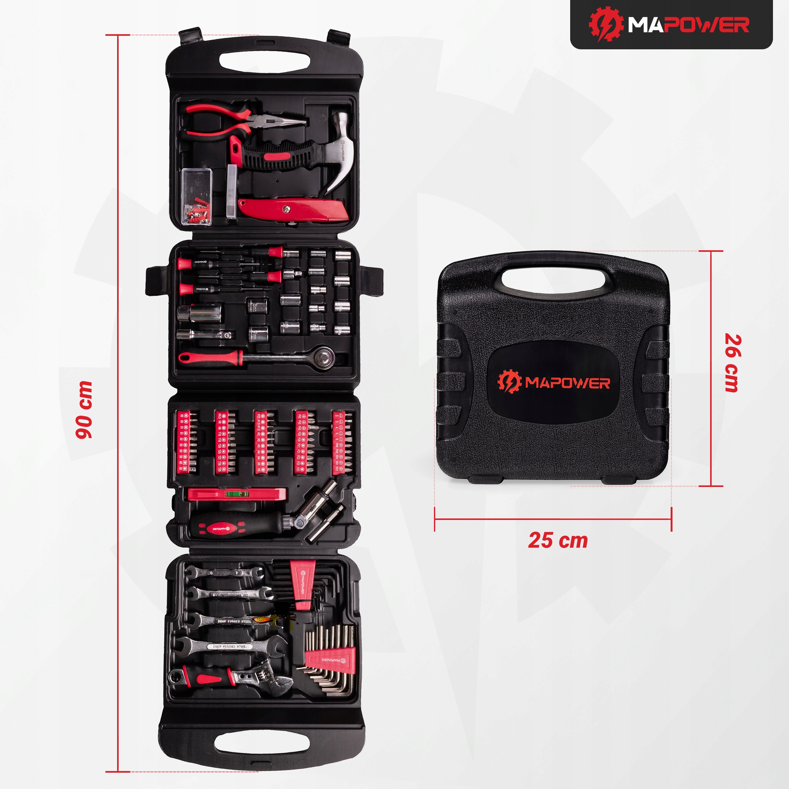 НАБОР РУЧНОГО ИНСТРУМЕНТА В КОРПУСЕ MPTS165 — ТРЕЩОТКА, ГОЛОВКИ, КОМБИНИРОВАННЫЕ КЛЮЧИ, ШЕСТИГРАННЫЕ КЛЮЧИ, ОТВЕРТКИ, СТОЛЯЧНЫЙ МОЛОТОК И МНОГОЕ ДРУГОЕ!