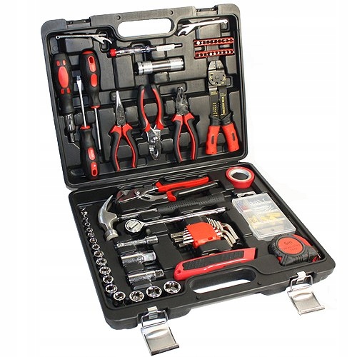Чемодан для инструментов с основными инструментами для повседневного использования, все собрано в практичном и устойчивом чемодане. Хорошо укомплектованный набор, насчитывающий 179 элементов.