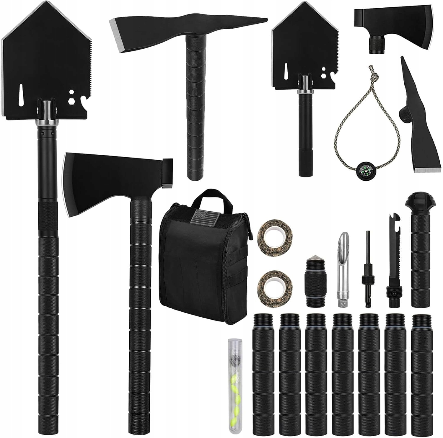 Инструменты выживания, которые просто построены! Выберите головку инструмента: лопата, топор, пикса, ледяной топор или треккинг, чтобы доминировать в каждой ситуации, в которой вы окажетесь. Отрегулируйте регулируемый держатель задачи, и он готов. Нет никаких ограничений в отношении длины, поэтому вы можете адаптировать свой нестандартный инструмент к любой желаемой длине к различным приложениям. Трубчатые секции имеют место для небольших элементов первой помощи, рыболовного и рыболовного оборудования, оборудования для выживания или чего -либо еще, что вы представляете, что будет соответствовать
