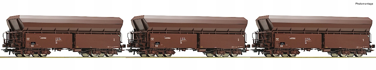 <р> Комплект из 3-х саморазгружающихся вагонов типа Fals Roco 77037 H0- Набор из 3-х саморазгружающихся вагонов Falns, PKP Cargo