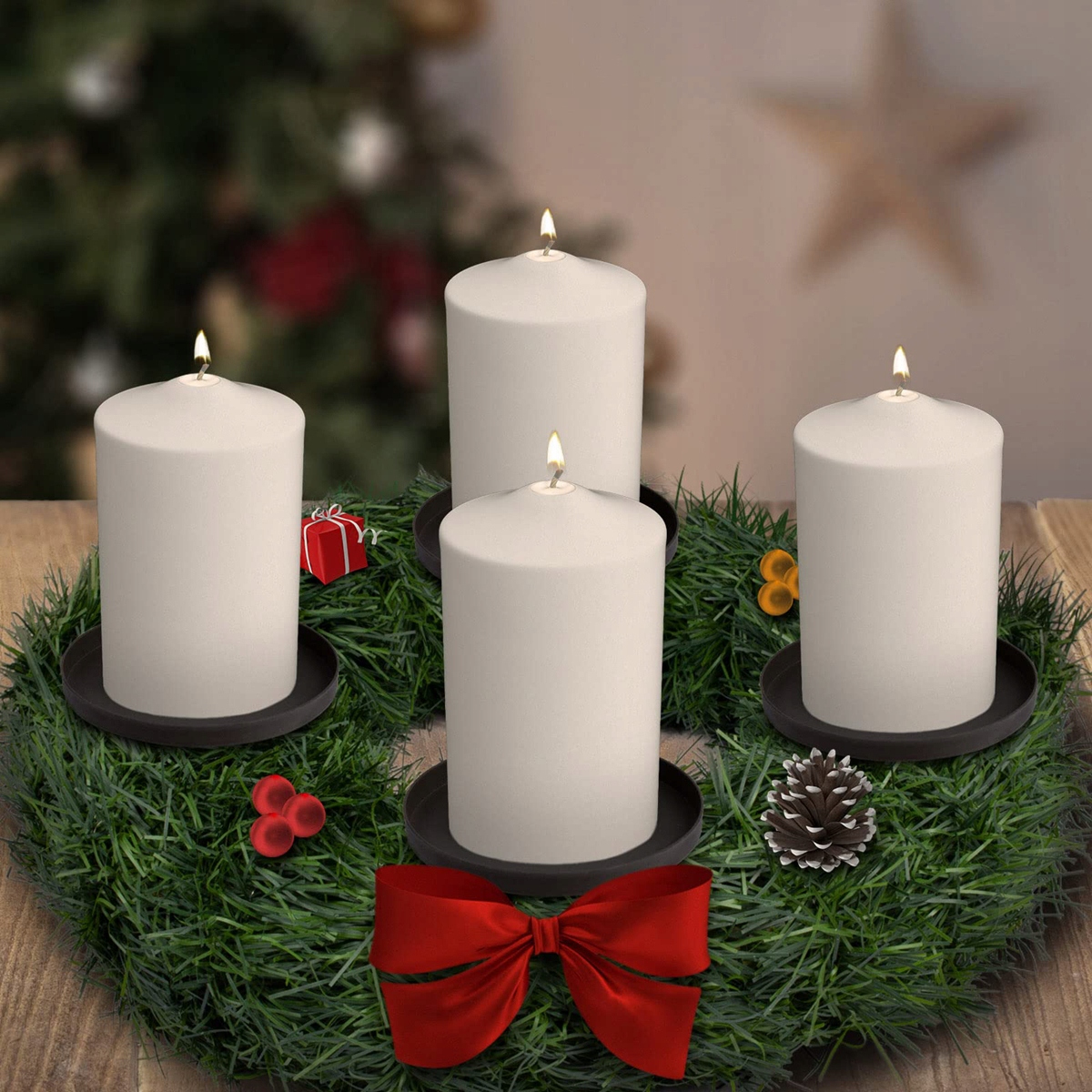📦📦📦В комплект входит: Набор из 4 подсвечников в форме венка, каждый диаметром 8 см и общей высотой 8 см. Их можно использовать со столбовыми или светодиодными свечами. Эти старинные подсвечники, изготовленные из высококачественного металла, прочны и долговечны, что обеспечивает долговечность и безопасность.