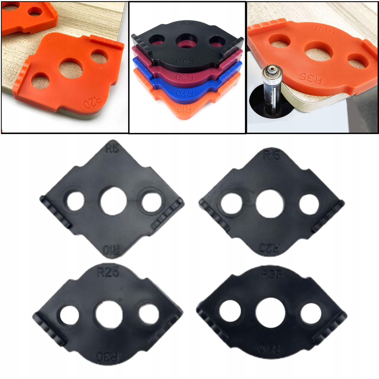 Набір із 4 шаблонів для фрез, кутових шаблонів для фрезування, заокруглений чорний