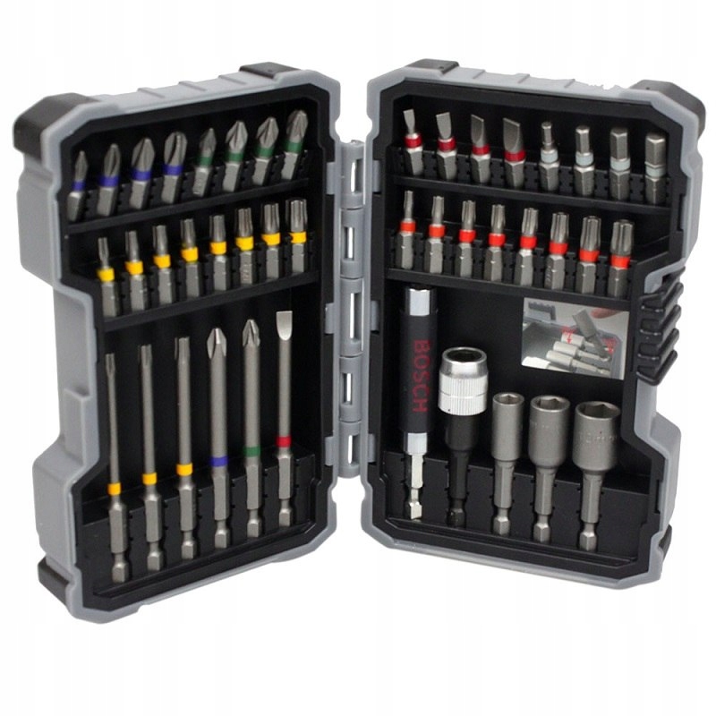 Привинтите и откручивая винты в различных материалах. Удобный и быстрый выбор правого наконечника возможен благодаря битам, отмеченной цветами . Предлагаемый продукт имеет внешний 1/4 -дюймовый шестигранный держатель для отверток и отверток.