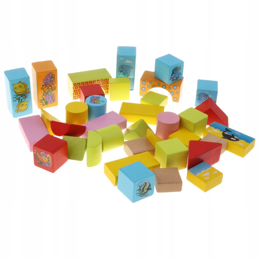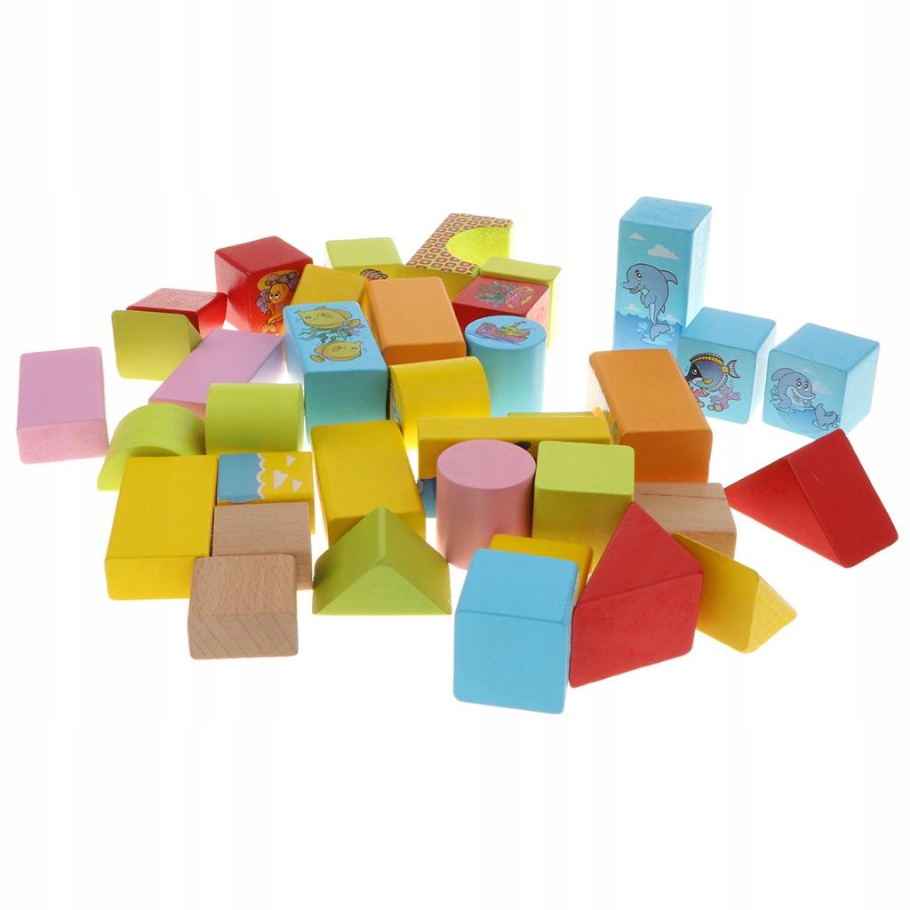 Набор из 46 штук различных деревянных кубиков в форме геометрических животных