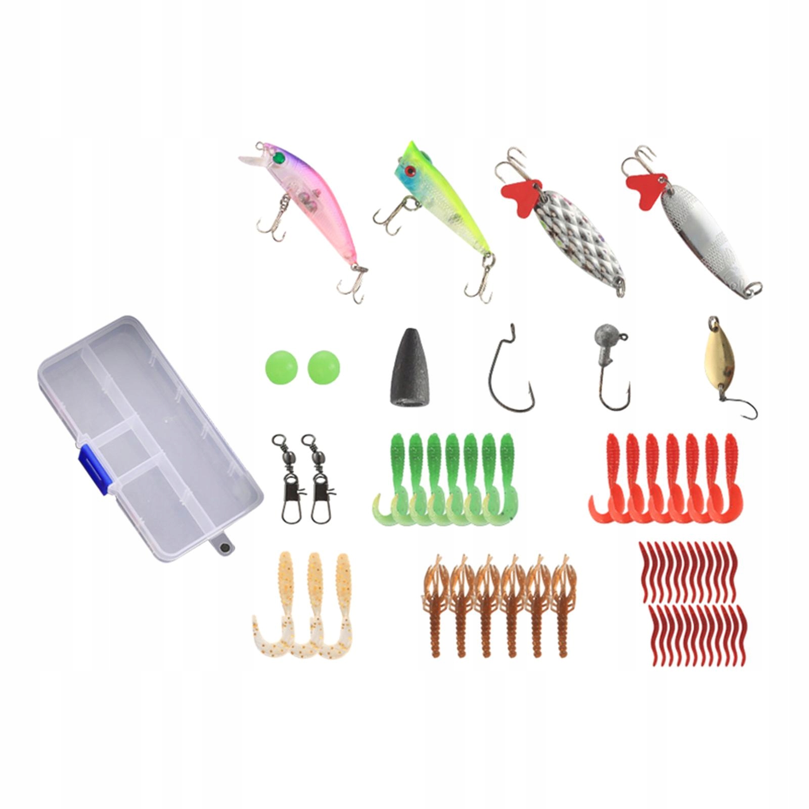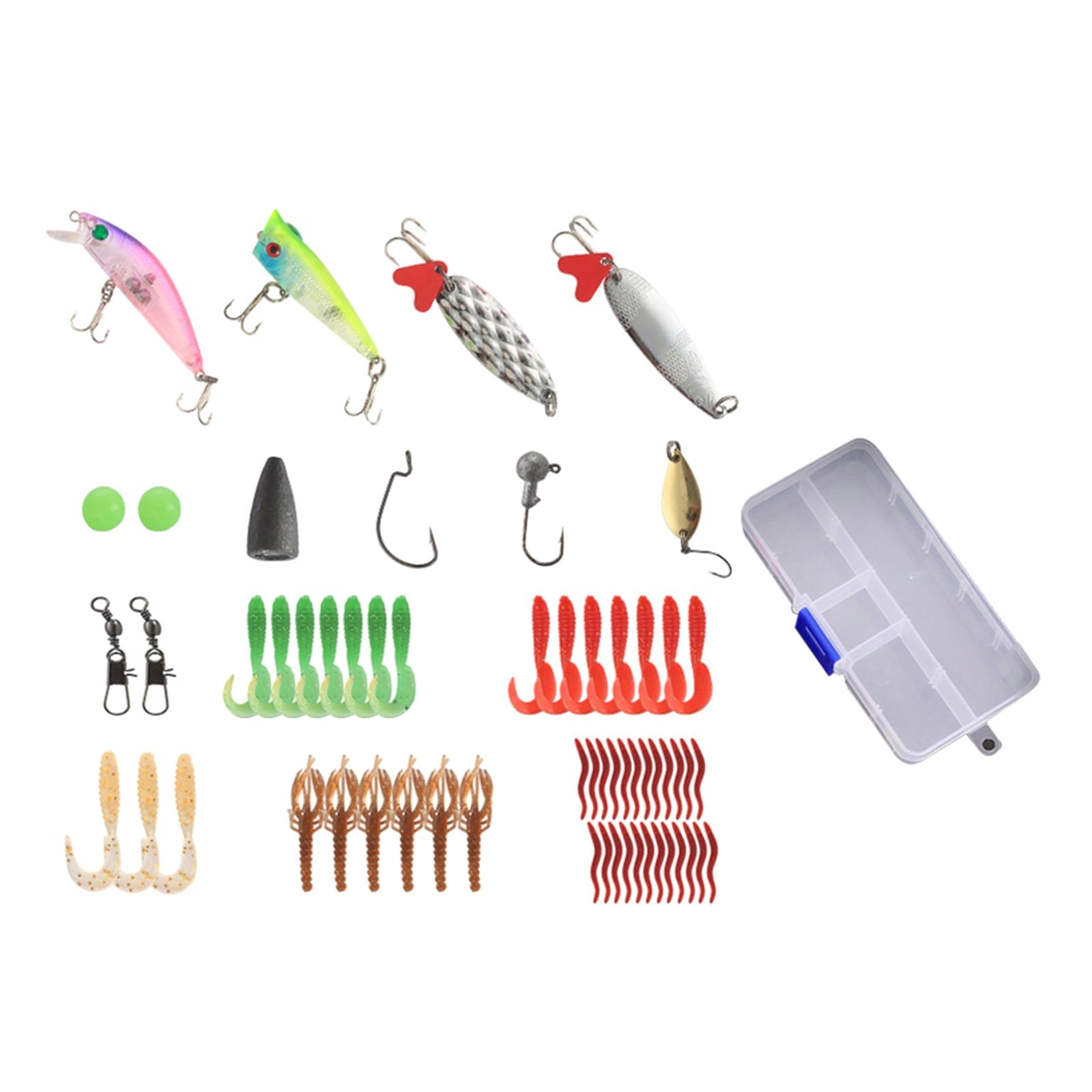 Набор рыболовных снастей включает в себя практически все аксессуары, включая рыболовные приманки, крючки, грузила, ограничитель лески, вертлюг, коробку для свободных снастей, обычные приманки для морской и пресноводной рыбалки, идеально подходящие для озера, реки, водохранилища, пруда и ручья.