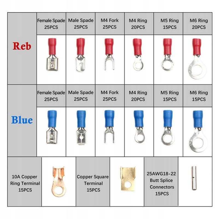 НАБІР ІЗОЛЬОВАНИХ КОНЕКТОРІВ 300 ШТ. KD10488 15 типів КОРОБОК