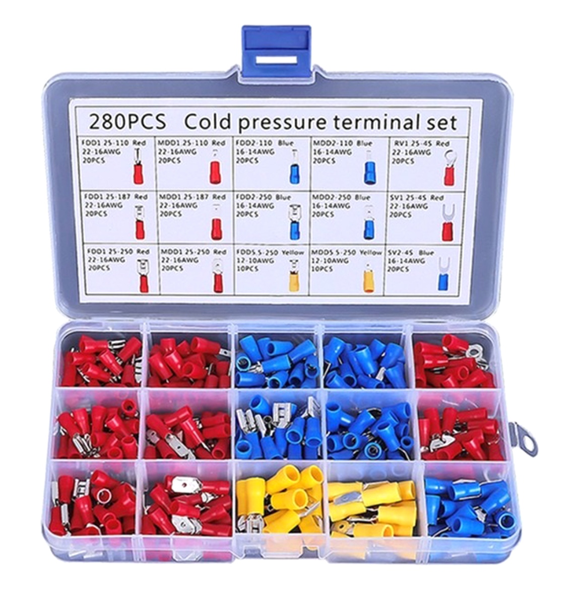 - Набор из 280 изолированных обжимных соединителей.