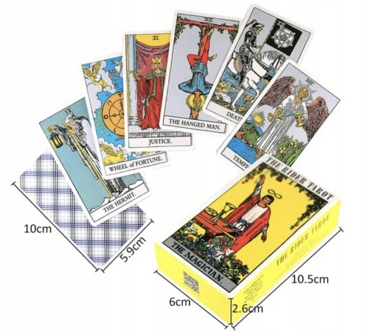 Это полная колода, состоящая из 78 карт, которые содержат богатые символы, изображения и числа, используемые для предсказания будущего, открытия более глубоких значений и получения советов о жизни и духовности.