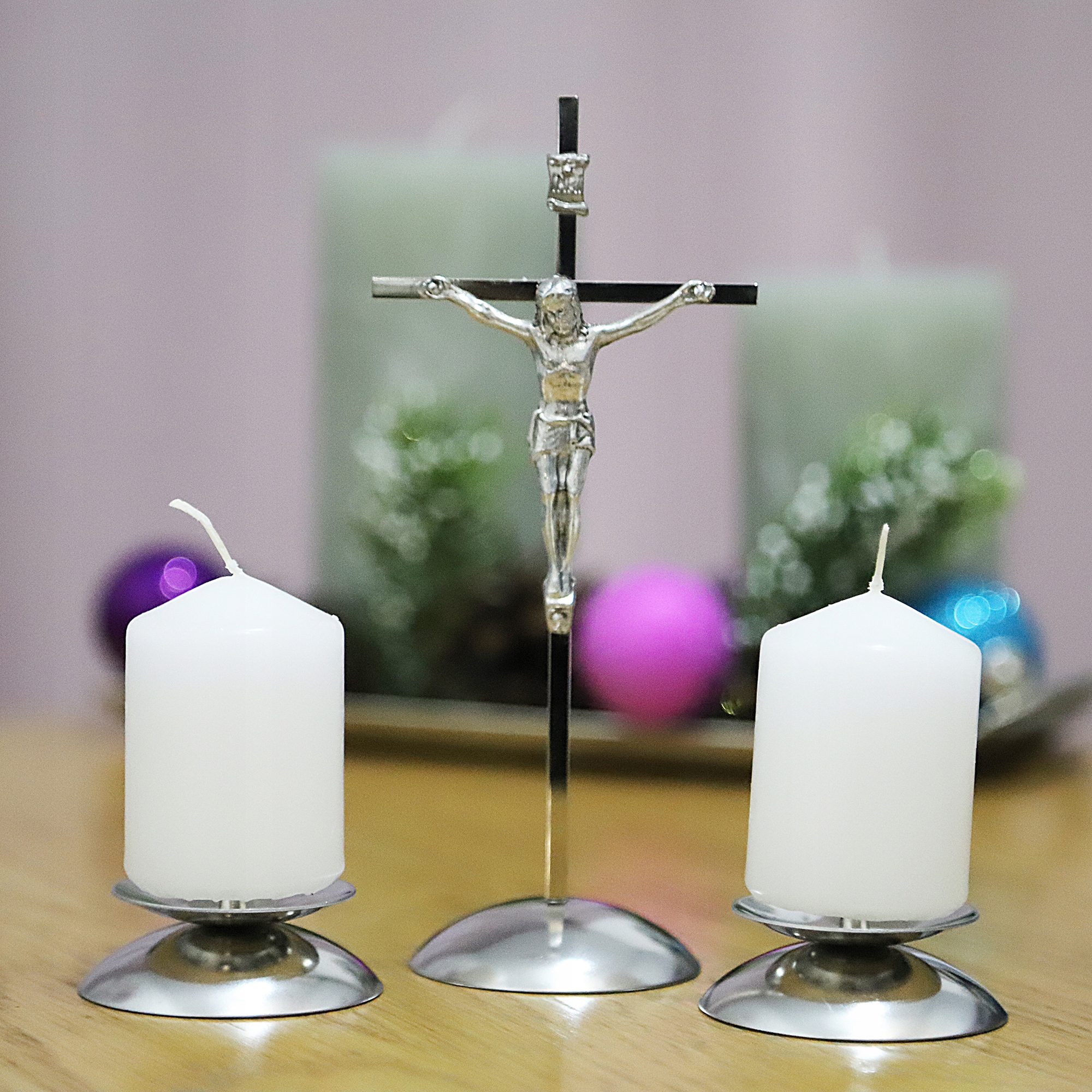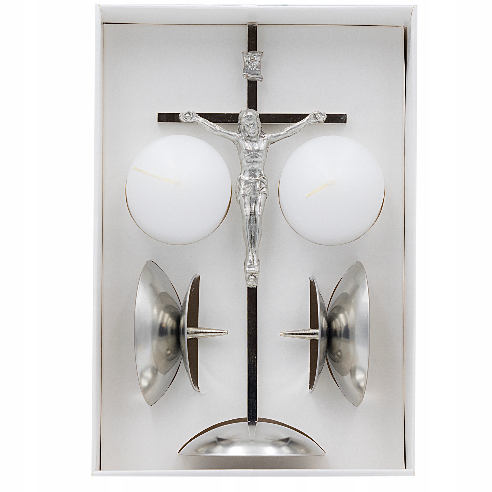 Набор набор Кэрол Сет Серебряный Кросс 2 Candlens Современные свечи