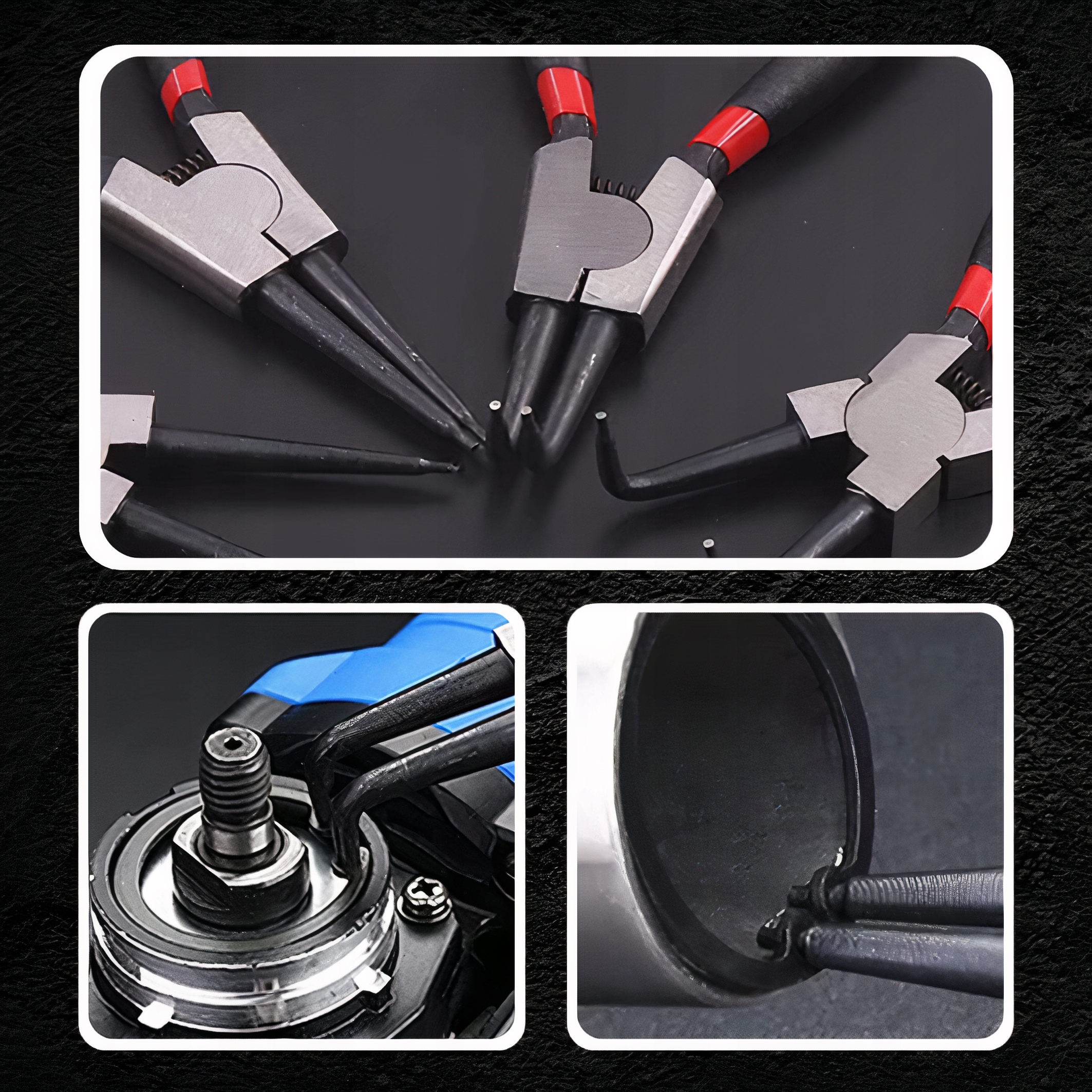 ✔️ Многофункциональные кольцевые инструменты✔️Набор кольцегубцев предлагает широкий набор функций, позволяющих устанавливать и снимать как внутренние и наружные кольца и наружные. С помощью этого инструмента вы можете работать со стопорными кольцами разных типов, обеспечивая точную и эффективную работу.