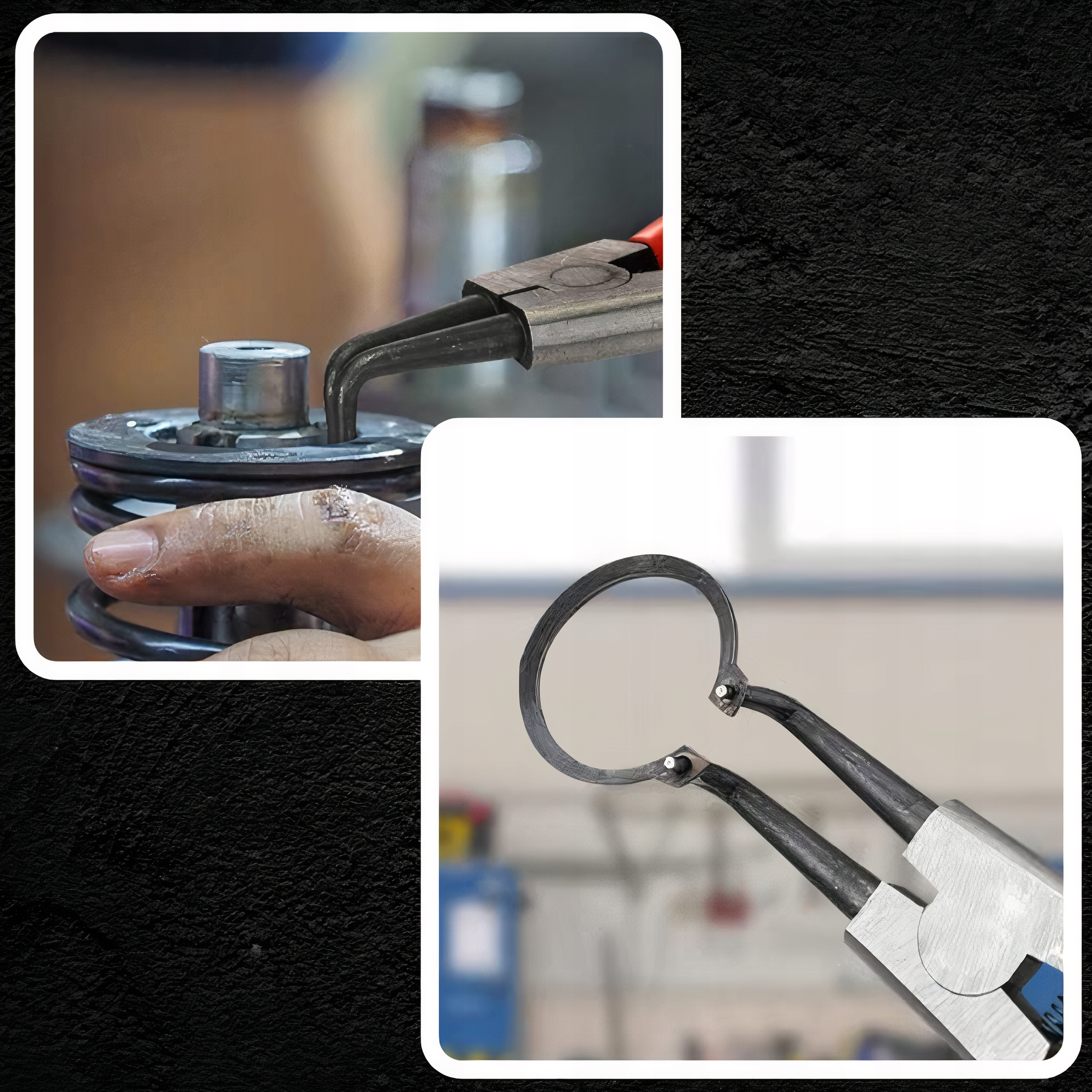 ✅Удобство и точность: Ручка Клещи покрыт нескользящим материалом, что гарантирует надежный и удобный захват. Кроме того, используемая мощная пружина повышает комфорт работы, обеспечивая точную и эффективную установку и снятие стопорных колец.
