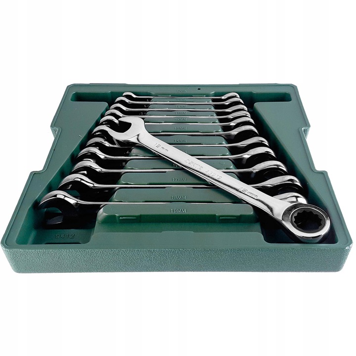 SATA НАБОР КЛЮЧЕЙ КОМБИНИРОВАННЫХ С ТРЕЩОТКОЙ 12 ШТ. КОРПУС