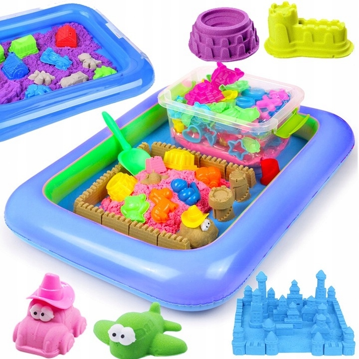 КИНЕТИЧЕСКИЙ ПЕСОК 2 КГ + РАЗНОЦВЕТНЫЕ ФОРМЫ + ПЕСОЧНИЦА