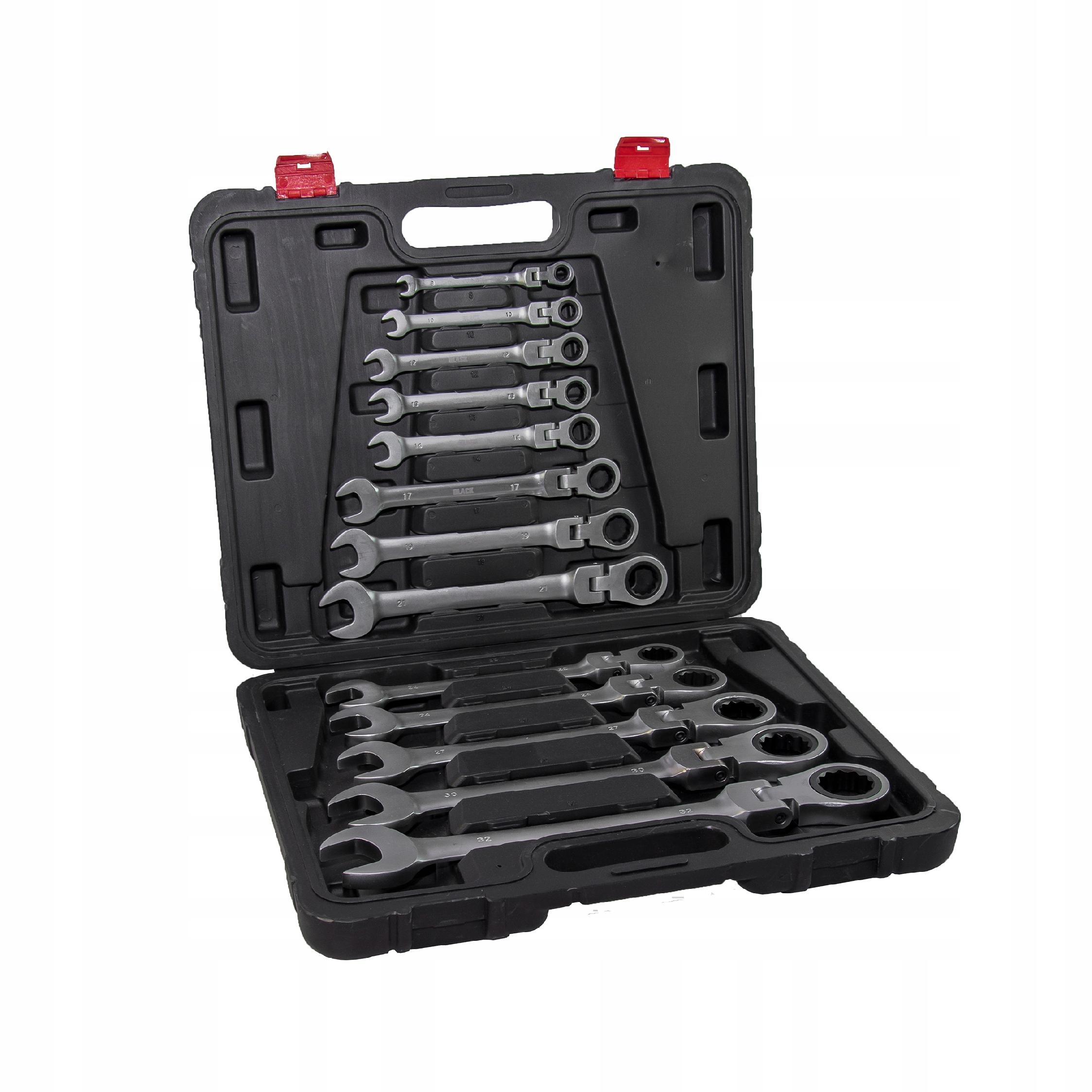 НАБОР КЛЮЧЕЙ НАКИДНЫХ, ТРЕЩОТКА, СЛОМАННЫЙ КОРПУС 8-32 ММ, 13 EL, ЧЕРНЫЙ