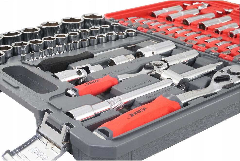 Профессиональный набор инструментов 94 предмета. Торцовые ключи и торцовый привод изготовлены из прочной хромованадиевой инструментальной стали CR-V. Трещотки имеют 72 зубца. Инструменты изготовлены с использованием материалов высочайшего качества, новейших технологий и патентов. Благодаря сочетанию этих факторов мы получаем продукт профессионального качества с огромной долговечностью. Комплект обеспечивает выполнение работ, требующих очень высоких нагрузок и точности, а также позволяет выполнять многие сервисные работы, связанные с отвинчиванием и завинчиванием резьбовых соединений различных номинальных размеров.