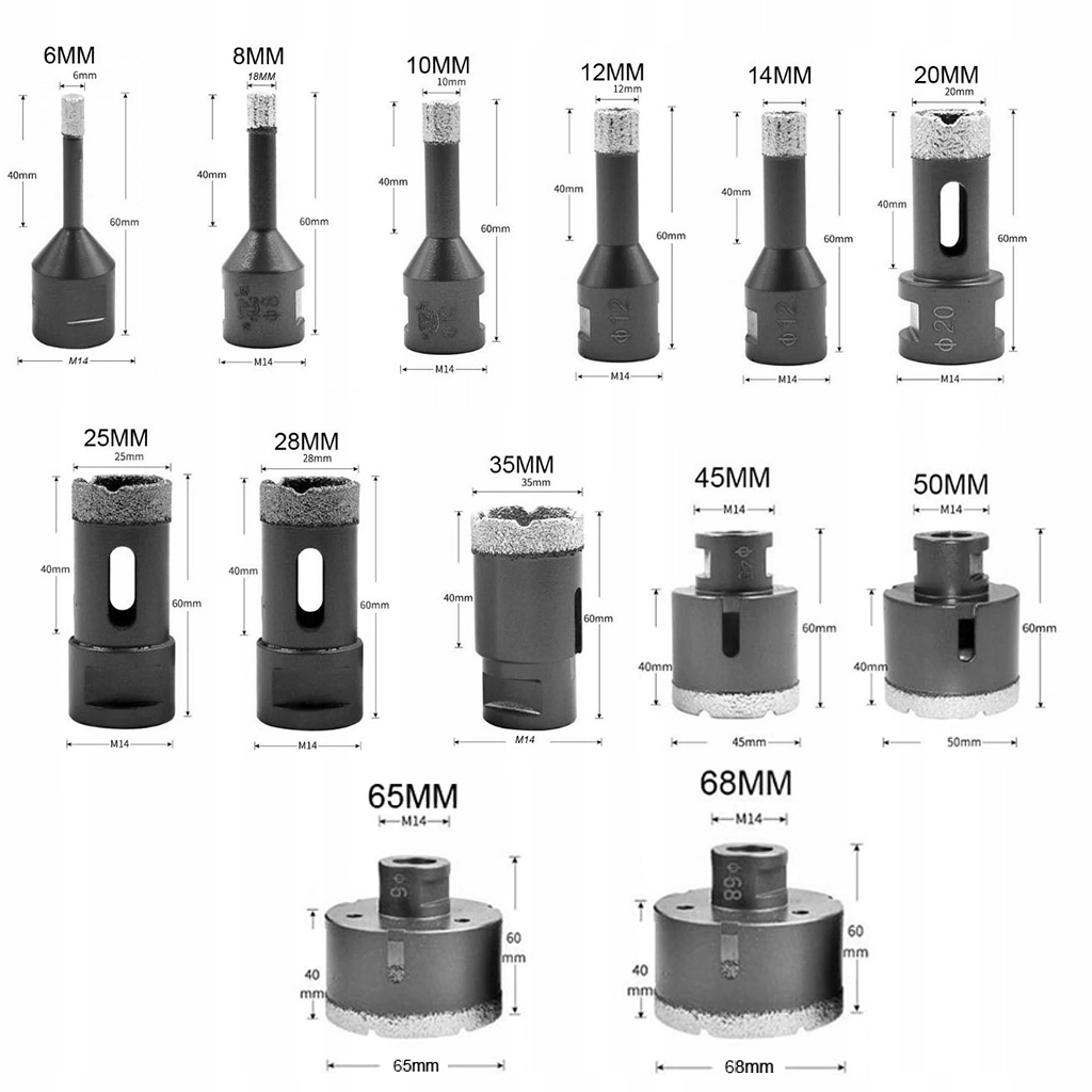 НАБІР КОЛЬЦЕВИХ ПИЛ АЛМАЗНІ СВЕРДЛА ДЛЯ ПОБЕРЕТИКИ 13 шт. 6-68