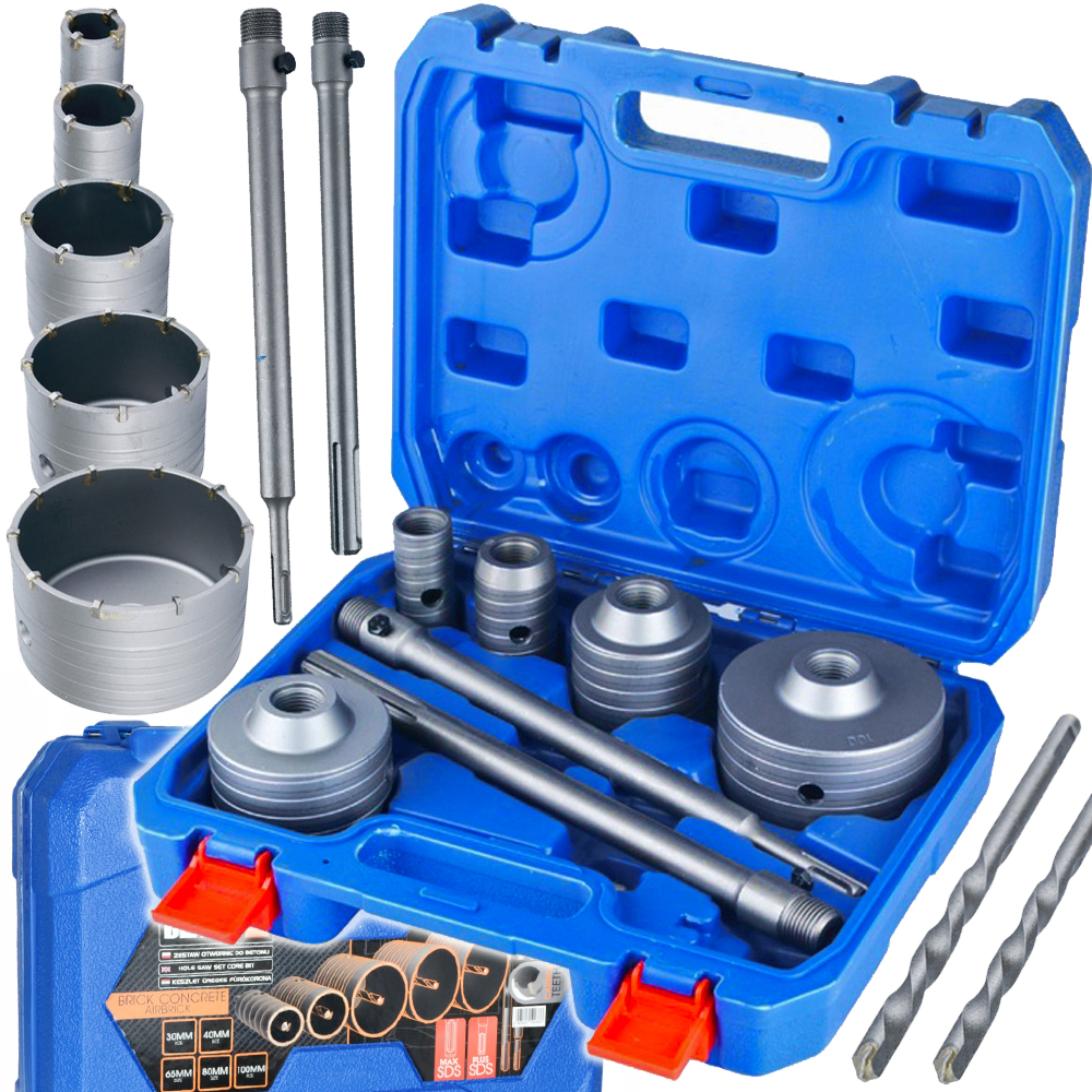Набір КОЛЬЦЕВИХ ПИЛ для БЕТОННИХ СТІН SDS+ SDS MAX 9EL 30, 40, 65, 80, 100мм BLACK
