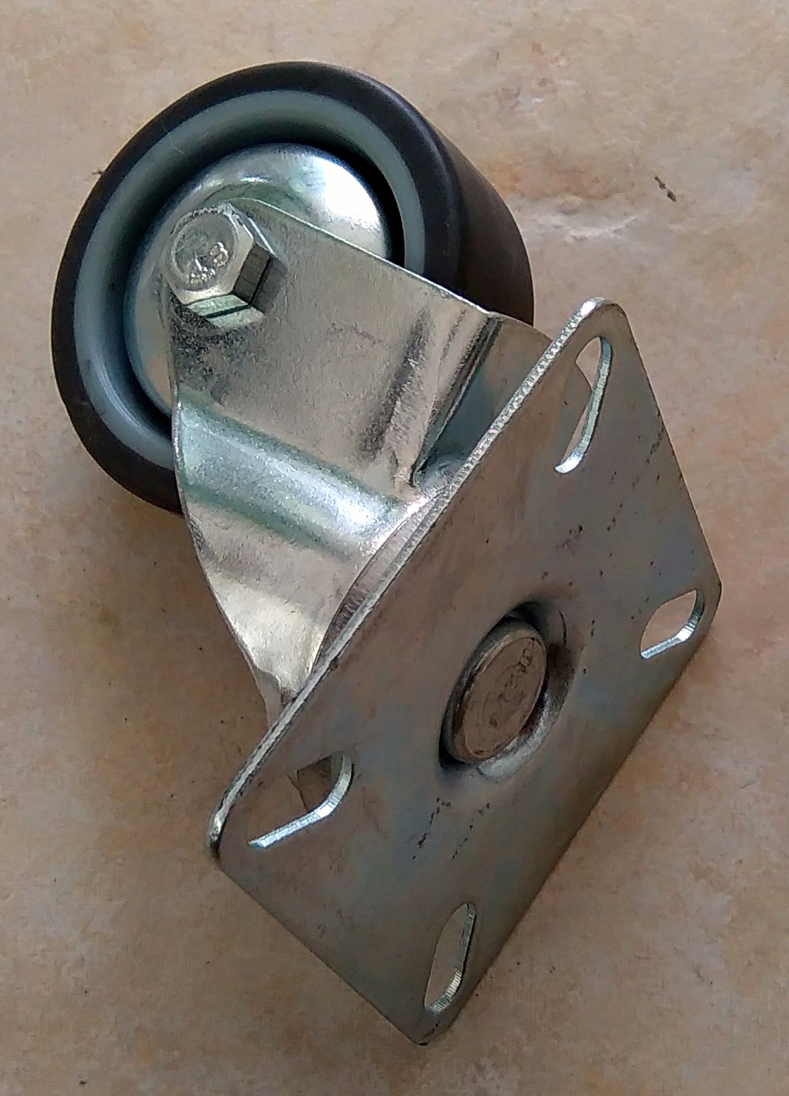 Предлагаю Вам качественные колеса американского производства.Колеса, установленные на пластине, представляют собой комбинацию аппаратной вилки из оцинкованной стали и полипропиленового колеса с протектором графитового серого цвета, изготовленного из не оставляющей следов термопластической резины.Тормоз блокирует колесо и головку.