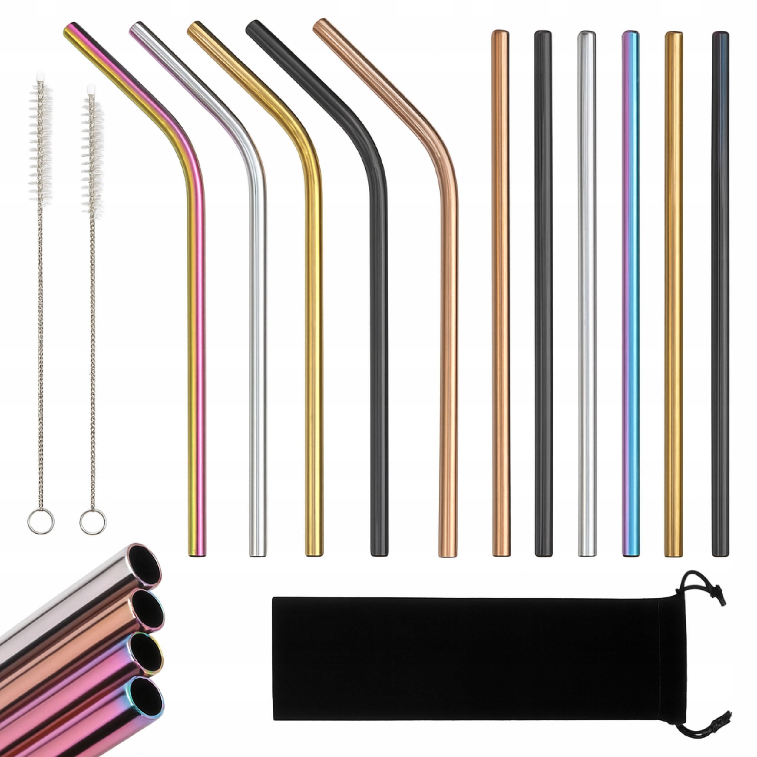 НАБОР РАЗНОЦВЕТНЫХ МЕТАЛЛИЧЕСКИХ СОЛОМОК 10x СОЛОМИНКА 2x ЧЕХОЛ ДЛЯ ЧИСТИТЕЛЯ