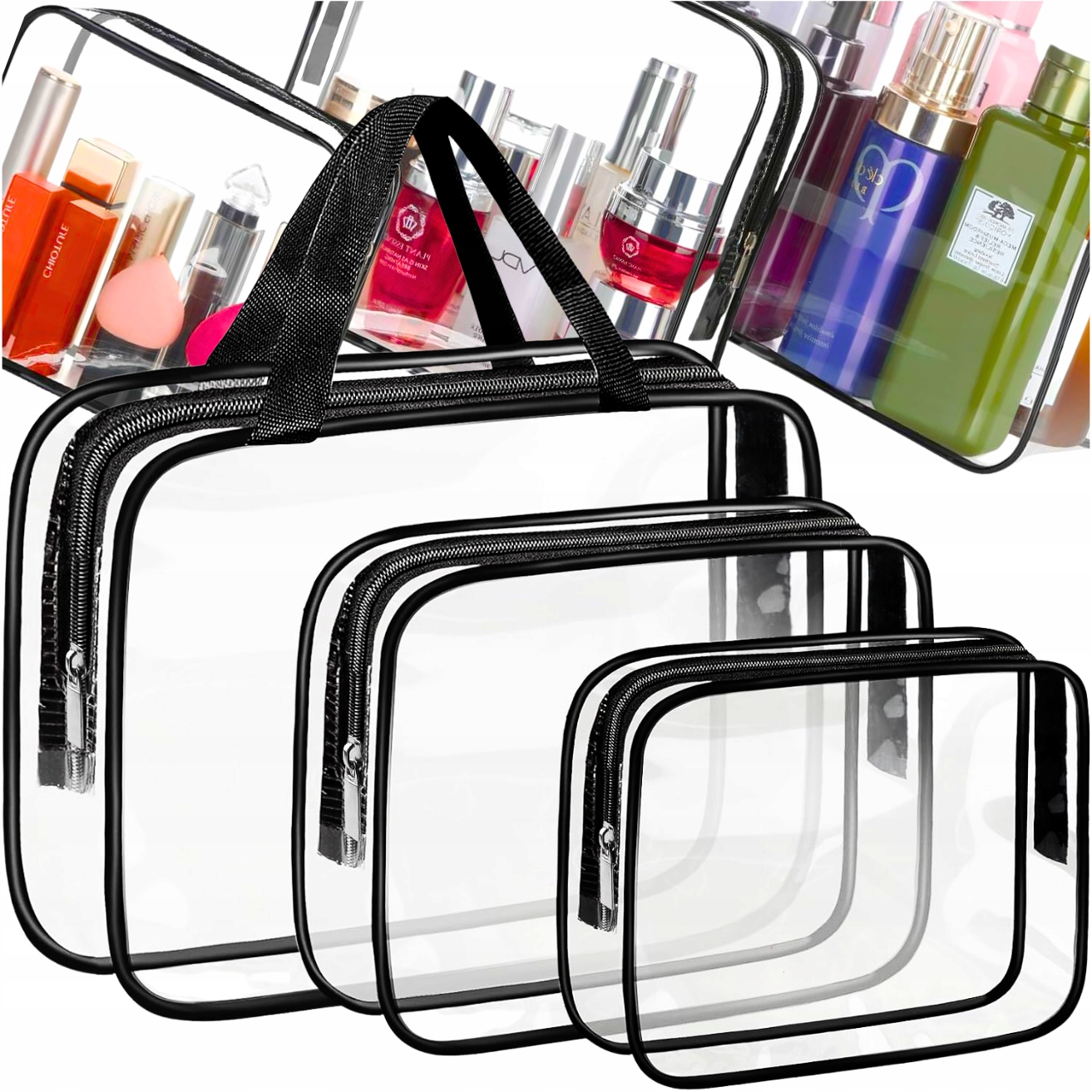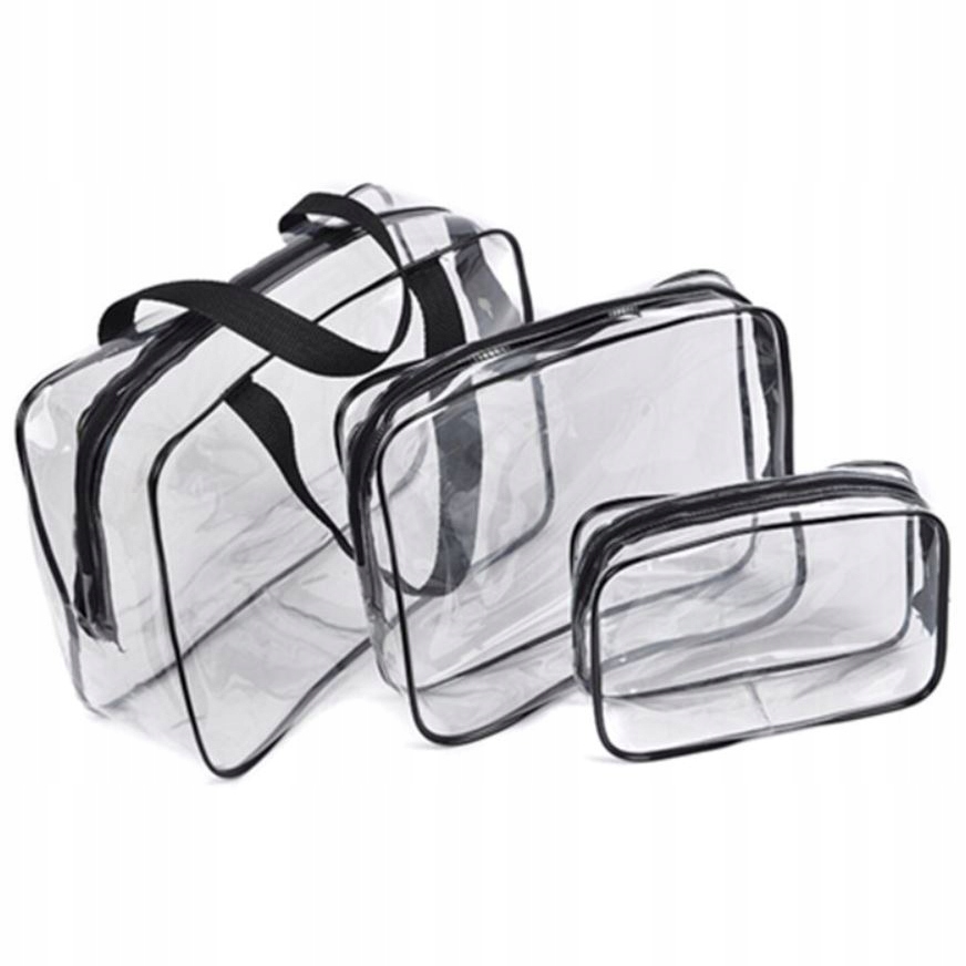 Набор 3-в-1 состоит из трех косметичек - большой, средней и маленькой. Изготовлен из прозрачного ПВХ-пластика, водонепроницаемого и очень легко чистящегося. Они идеально подходят для путешествия или отпуска, а также для посещения бассейна или тренажерного зала. В них можно разместить не только косметику и гигиенические принадлежности, но и небольшое полотенце, кошелек и телефон. Прозрачный материал облегчит быстрое нахождение нужного предмета и ускорит регистрацию в аэропорту. Самую большую косметичку можно использовать как сумочку благодаря длинной черной ручке.