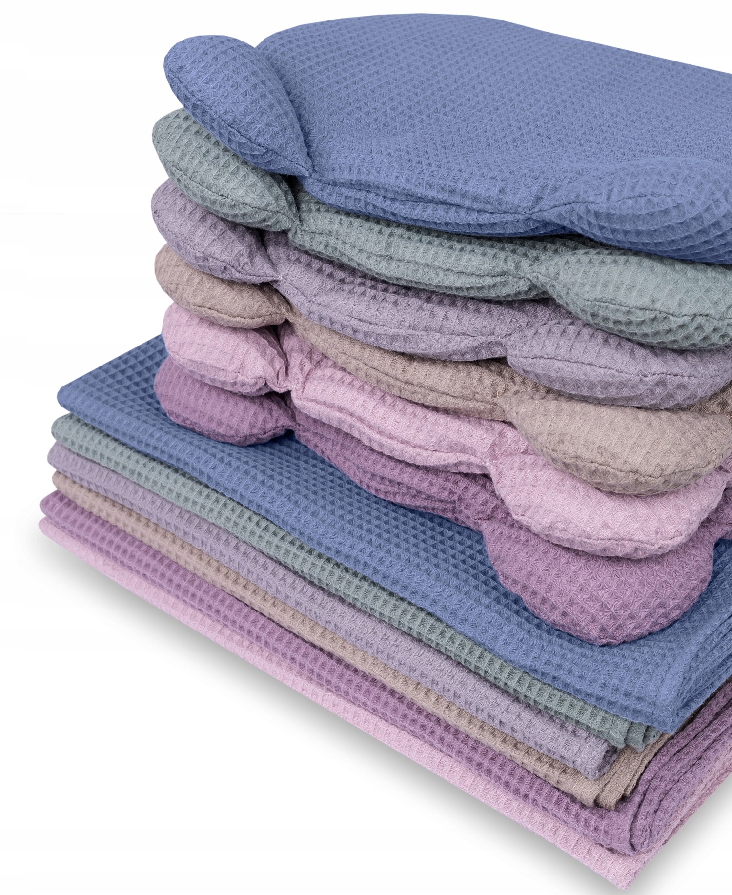 Интересное переплетение хлопка позволяет комплекту «ВАФЛЯ» служить еще и декоративным элементом для комнаты и детской коляски.