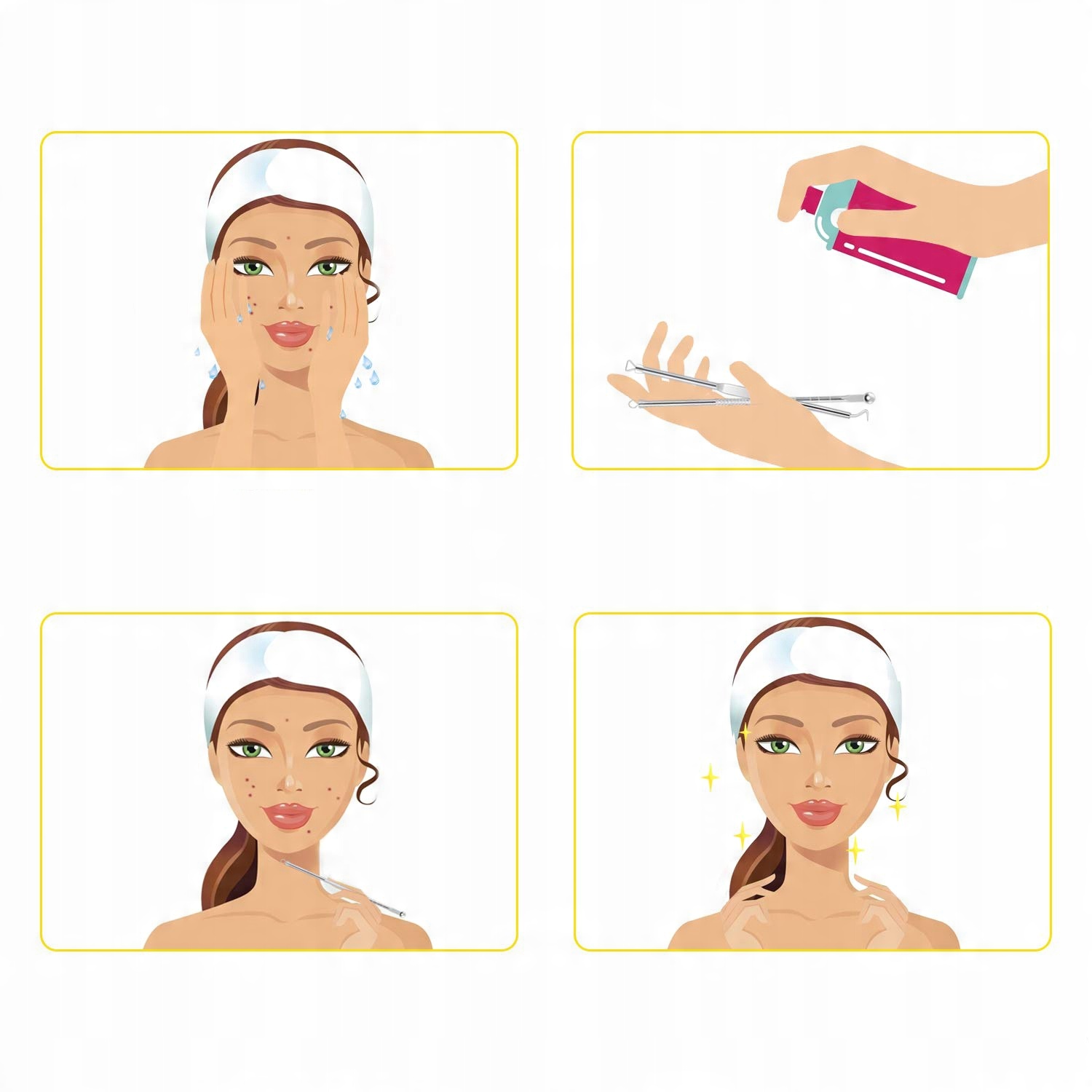 С помощью средства для удаления прыщей, средства для удаления комедонов, пинцета и средства для лечения милиумов вы справитесь со всем этим .
