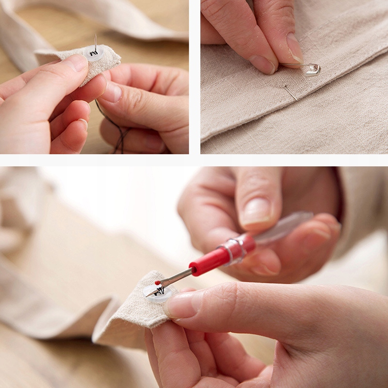 Набор инструментов содержит все основные элементы, необходимые для пришивания порванной пуговицы или закрытия дырки.