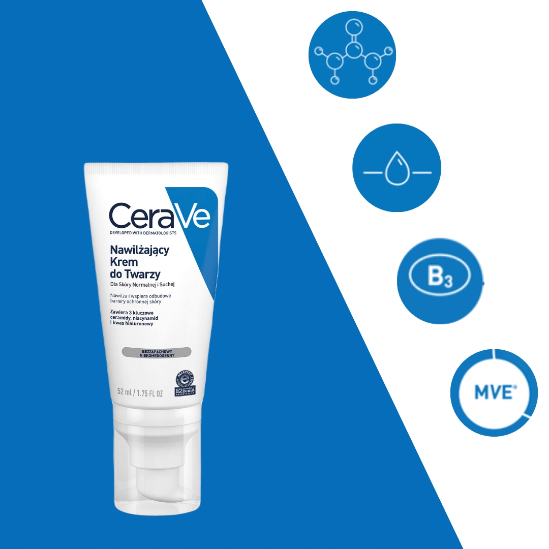 Увлажняющий крем для лица CeraVe – для нормальной и сухой кожи, 52 мл