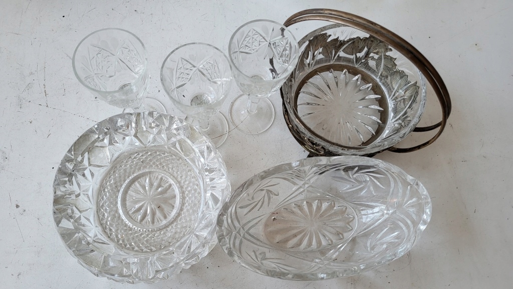 НАБІР КРИСТАЛІВ ГРАФИН ВАЗИ КЕЛИКИ ПОПІЛЬНИЦЯ КЕРАМІН ЛАТУНЬ GWR