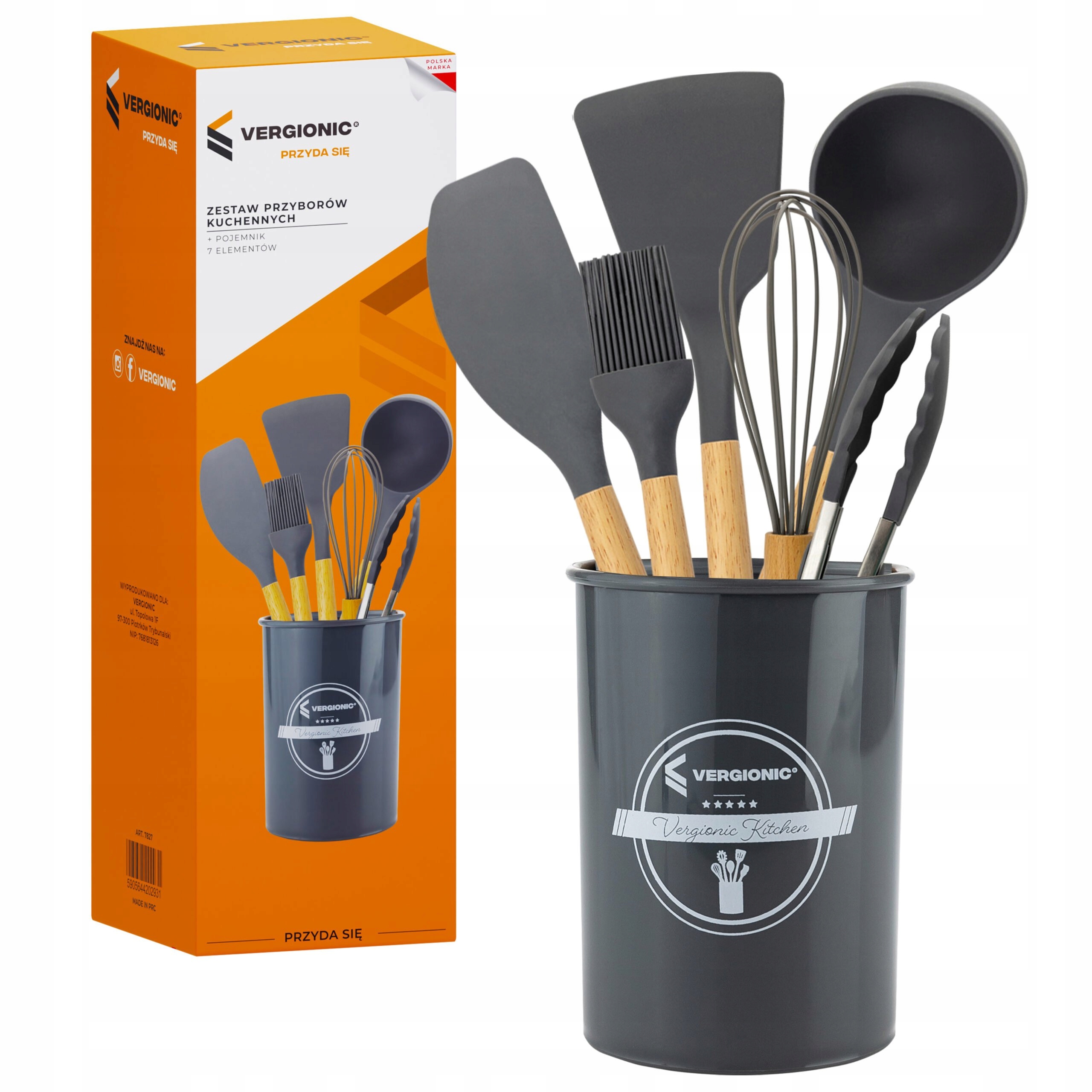 Важно облегчить вашу работу и в то же время минимизировать занимаемое ею пространство. Набор кухонной утвари – идеальное решение при приготовлении еды. Посуда подходит для смешивания, процеживания, нанесения и переворачивания различных ингредиентов. Набор состоит из 7 элементов, которые сделают приготовление пищи более приятным и эффективным, в том числе: кисть, ложка, лопаточки, венчик, щипцы и емкость для хранения.