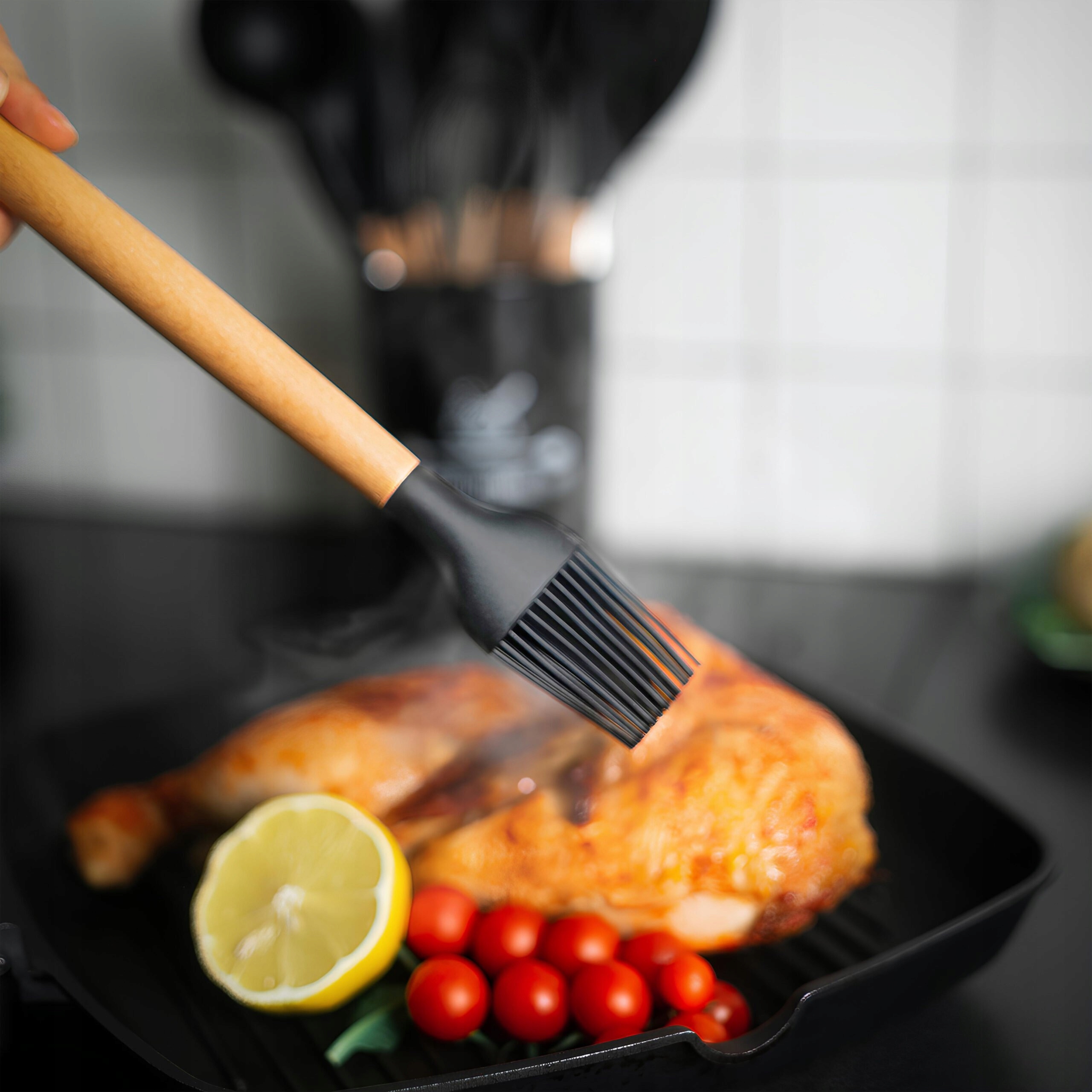 Все элементы изготовлены из высококачественного дерева и силикона, что обеспечивает не только долговечность, но и простоту очистки. Они не повреждают поверхность посуды. Кроме того, эргономичная форма ручек гарантирует удобный и надежный хват, что позволяет выполнять точную и безопасную работу.