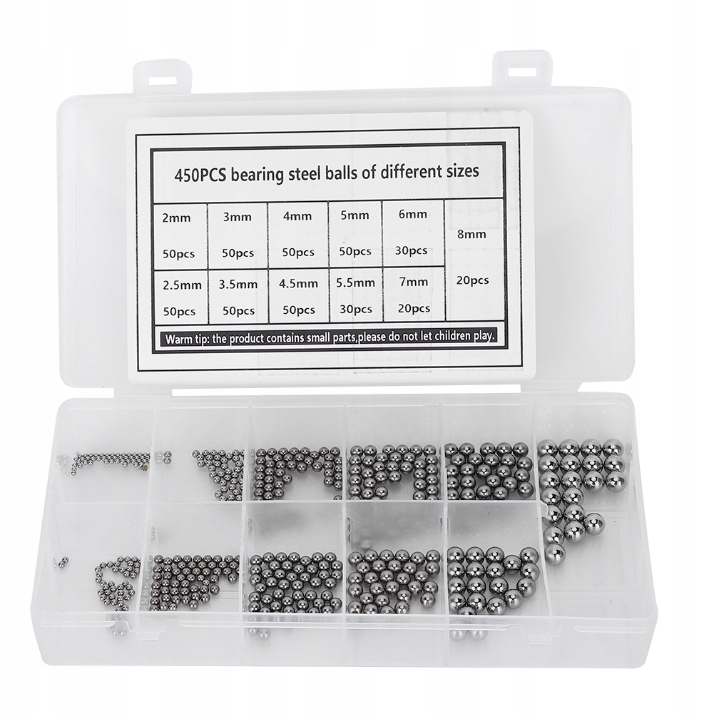 НАБОР ШАРИКОВ СТАЛЬНЫХ ПОДШИПНИКОВ ИЗ 450 ШТ. 11 РАЗМЕРОВ M2-M8