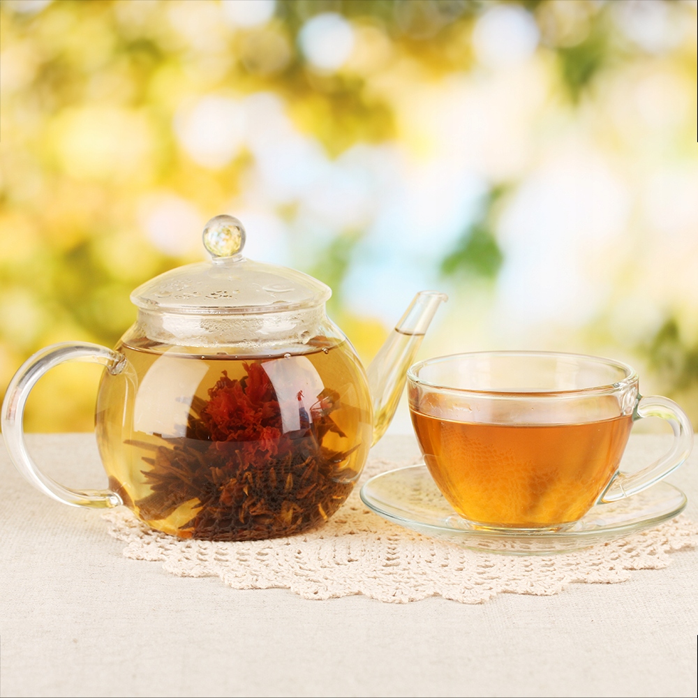 Цветущий чай – это листья белого или зеленого чая, сплетенные в причудливую форму или просто в шарик. После обливания шара горячей водой конструкция начинает превращаться в красивый экзотический цветок. Полученный настой имеет достаточно нежный, прозрачный цвет, чтобы хорошо был виден распускающийся в кувшине цветок.