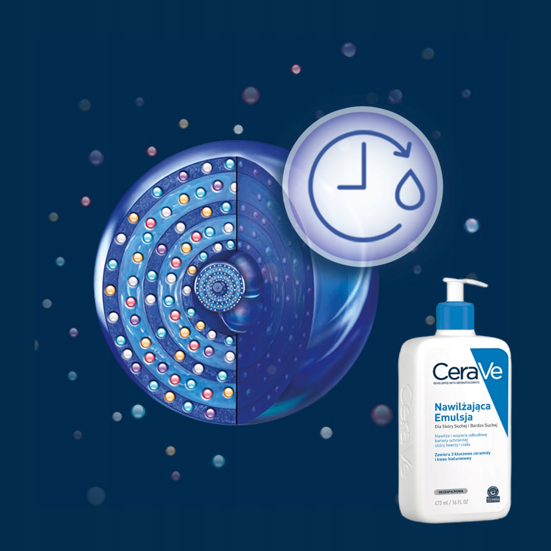 - Увлажняющая эмульсия для сухой и очень сухой кожи содержит керамиды и гиалуроновую кислоту, которые обеспечивают длительное увлажнение до 48 часов и успокаивают сухую, зудящую и чувствительную кожу.