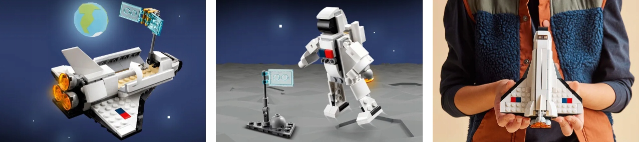 - 3 модели в 1: космический челнок, космонавт и космический корабль