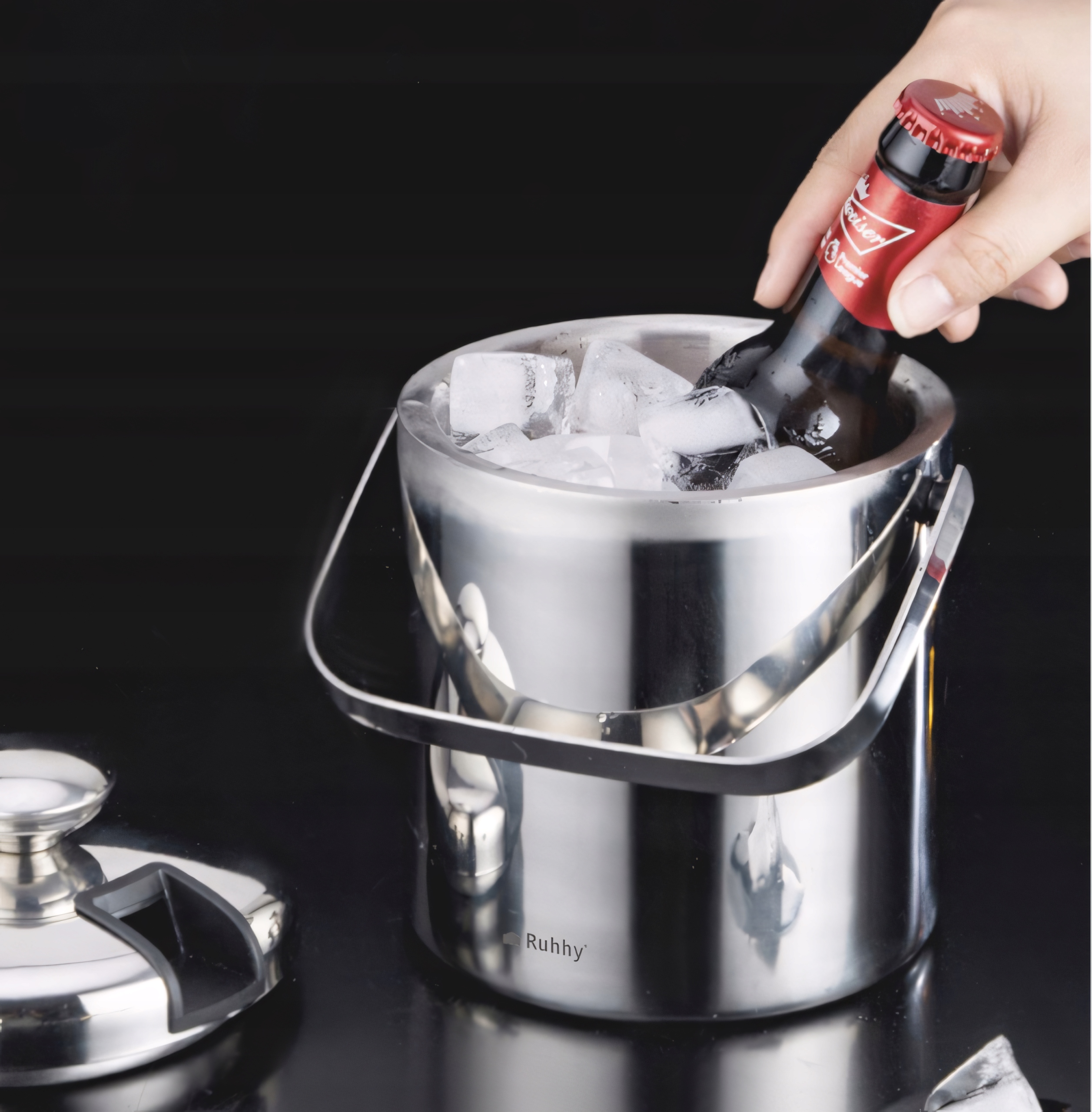 🧊 Двойные стенки сохраняют прохладу. Ведро с двойными стенками, изготовленное из прочной нержавеющей стали, сохраняет лед замороженным дольше, обеспечивая свежесть ваших напитков.
