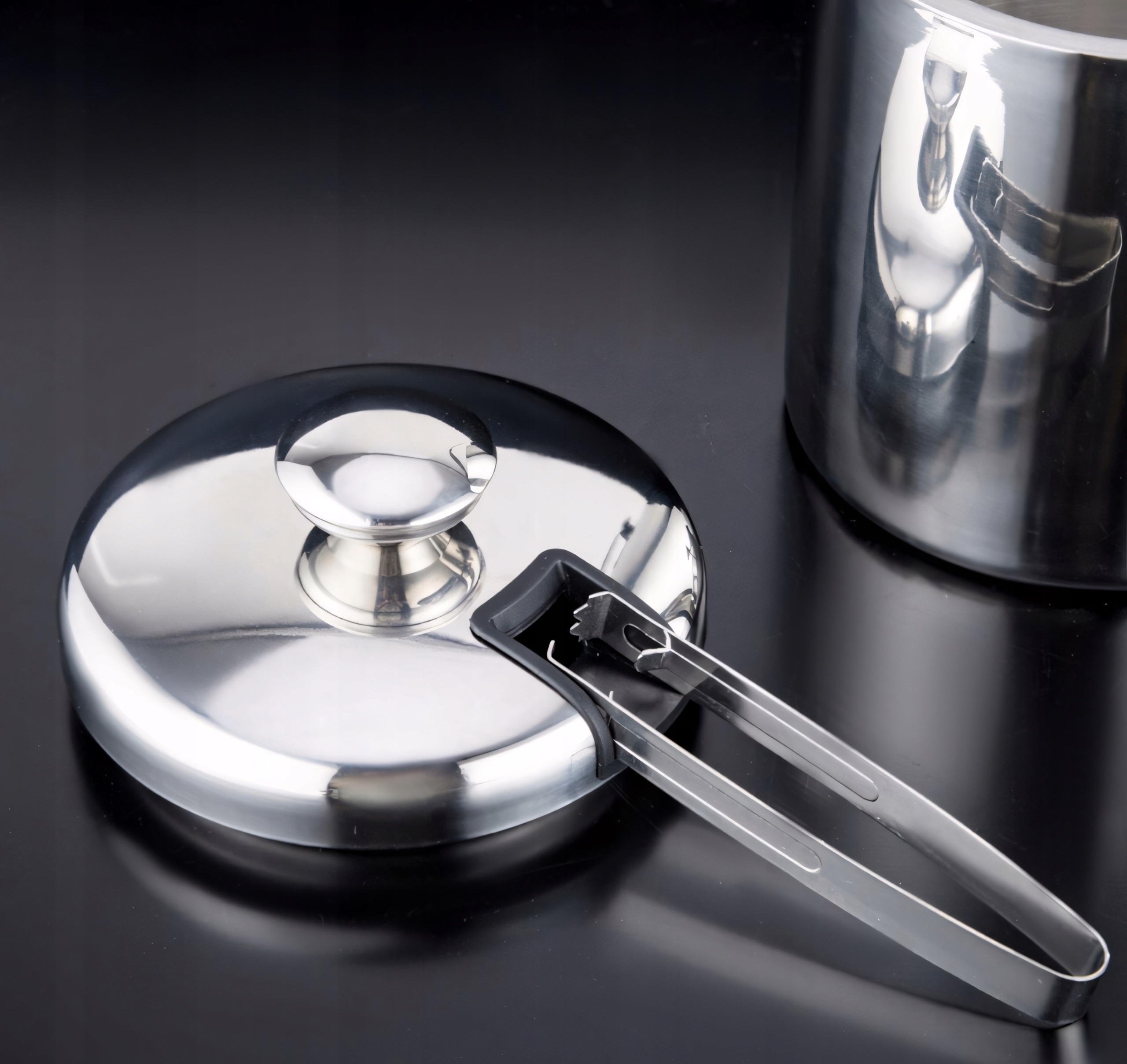 НАБОР ДЛЯ ЛЬДА СЕРЕБРЯНОЕ ВЕДРО ТЕРМОС 1,3 Л + ЩИПЦЫ ДЛЯ ЛОЖКИ СИЛЬНО С КРЫШКОЙ