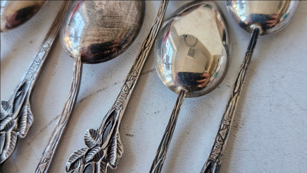 НАБОР АНТИК-СЕРЕБРЯНЫХ ЛОЖЕК, УКРАШЕННЫХ РОЗОЙ, В ФОРМАТЕ GWR