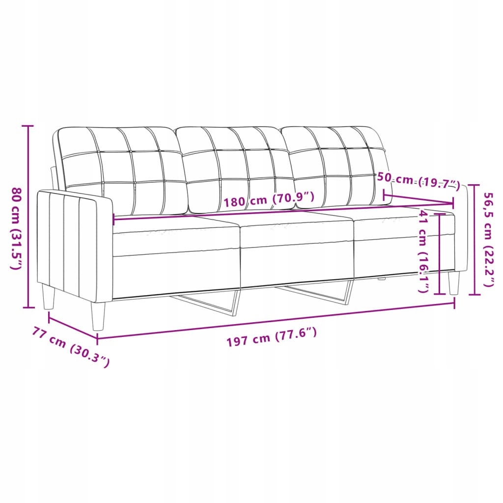 - Общие размеры: 197 х 77 х 80 см (лат. х глубина x высота)