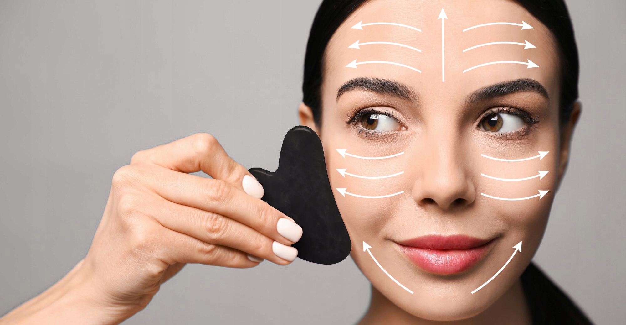 Начинать массаж камнями Гуа Ша стоит с шеи и надключичной области, продвигая пластину вверх. Затем переходите к подбородку и челюсти. Сделайте сияющие и уверенные движения, а затем переходите к щекам. Всегда массируйте изнутри!