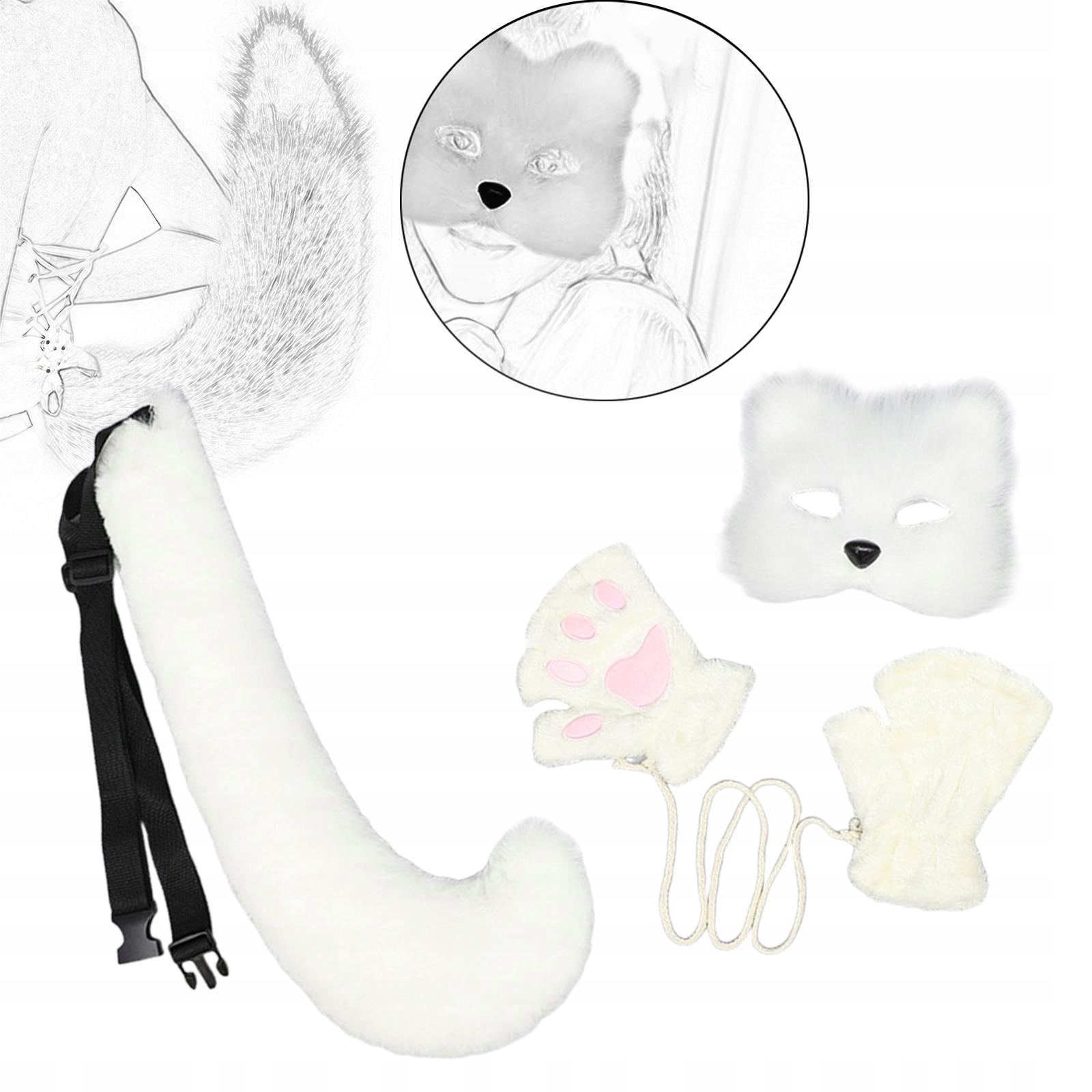 Терианская маска и хвост Маскарадная пушистая маска для рождественского карнавала-маскарада Белая короткая прическа