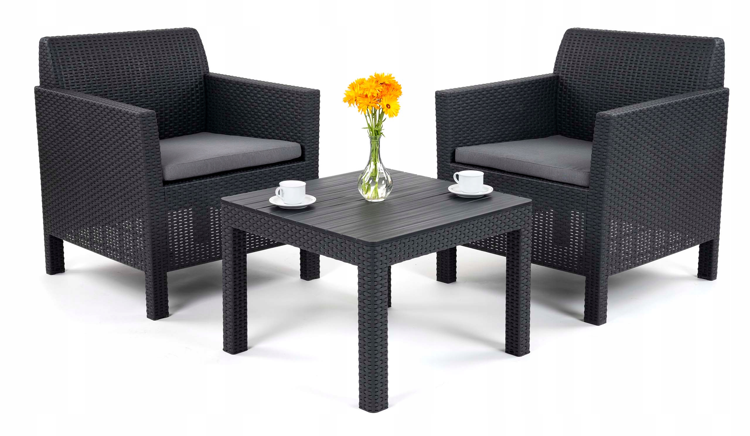 Классический комплект садовой мебели Orlando Weekend – идеальное предложение для тех, кто ищет стильные элементы оборудования балкона или террасы. Элегантные цвета, простая форма и интересная текстура поверхности, вдохновленная натуральным ротанговым переплетением, — основные эстетические ценности изделия. Компактные размеры и простота сборки – дополнительные преимущества набора. В комплект входят два кресла и журнальный столик со столешницей, имитирующей доску. Мебель из качественного пластика устойчива к внешним факторам и ультрафиолетовым лучам.