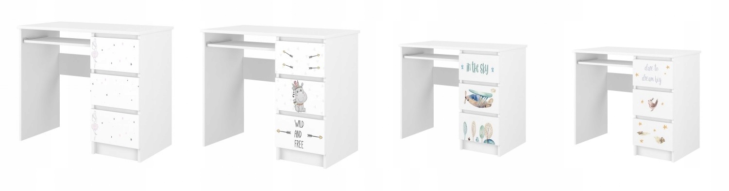 -это практичный и функциональный предмет мебели, который найдет его использование в комнате каждой детской. Эргономичные размеры обеспечивают бесплатную мебель комнаты. Комод изготовлен из белого цвета, отделанный шпоном. Он состоит из пяти ящиков, установленных на гидах, которые были оснащены ограничениями, чтобы полностью предотвратить. В ящиках есть красочный отпечаток, который имеет красивые яркие цвета и защищен специальным ламинатом, чтобы он не исчезал или истирание.